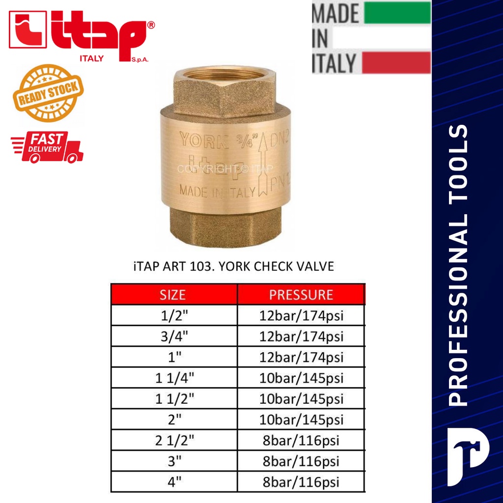 [Original Italy] York Check Valve / Non Return Valve / One Way Valve 1/2" - 2"