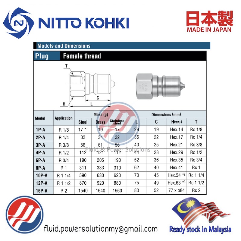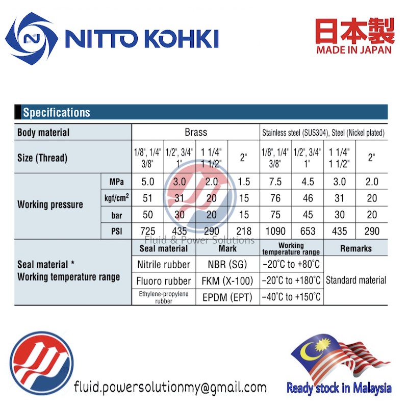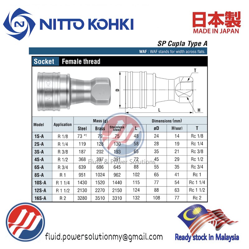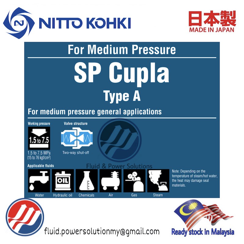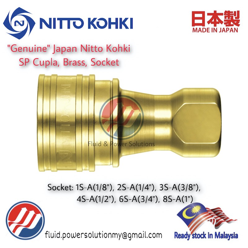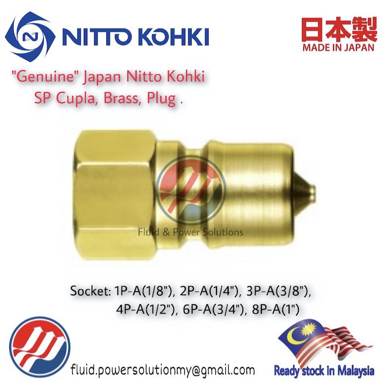 "Original" Nitto Kohki SP-A Cupla Brass Material Socket and Plug 1P,1S,2P,2S,3P,3S,4P,4S ,Automatic shut-Off Valve.