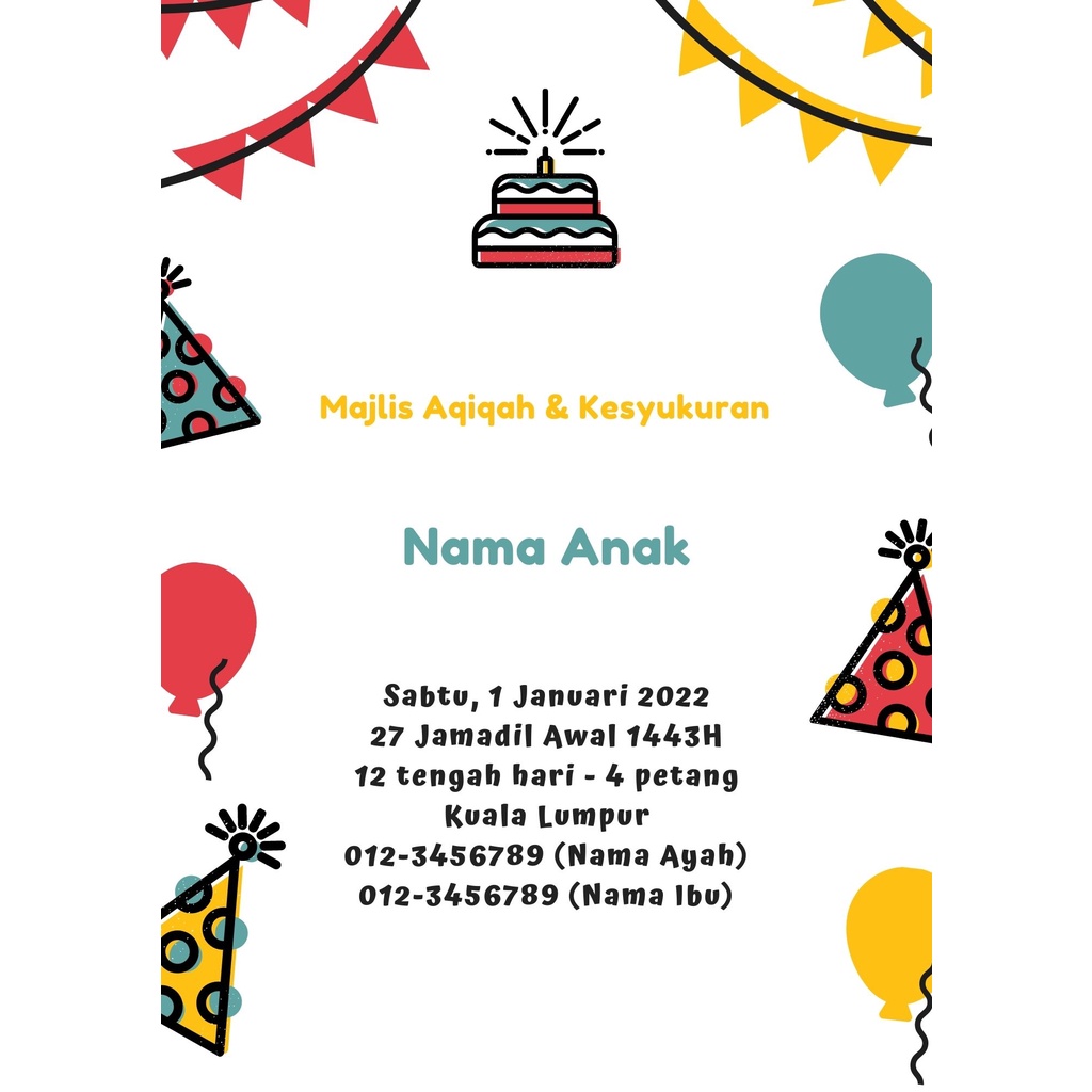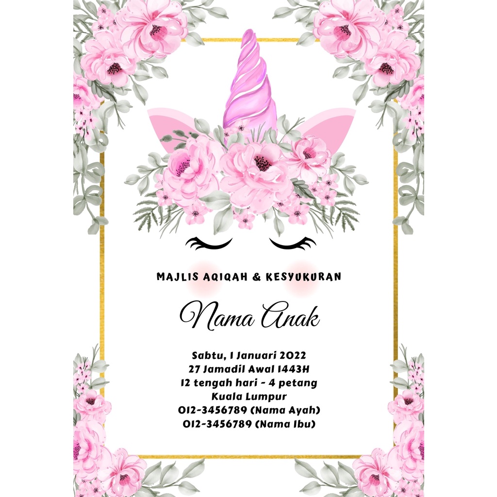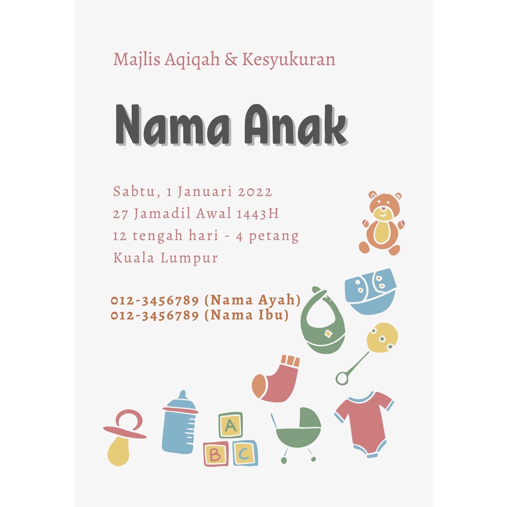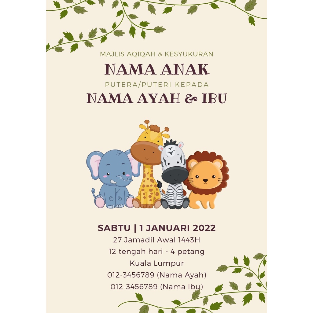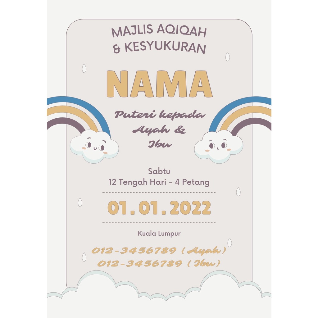 [PART 1] Kad Jemputan Majlis Aqiqah dan Kesyukuran Hari Lahir Birthday Digital | PDF PNG Video Muzik RSVP Ayat Hebahan