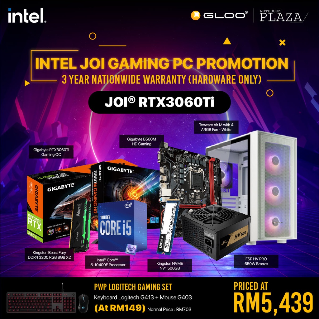 [PC Package] Intel I5 10400F DIY RTX3060TI Gaming Desktop PC - Suitable for Work / Gaming / Web Browsing
