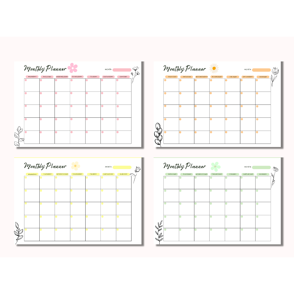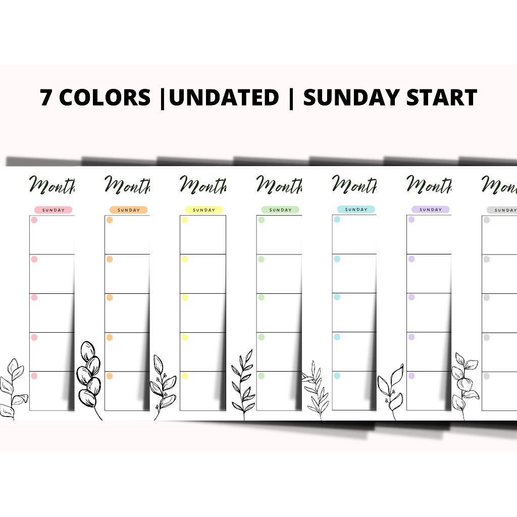 [PDF] - 14 Pages Printable Blank Monthly Planner with Seven Colour Options, Sunday/Monday start, A4 Printable