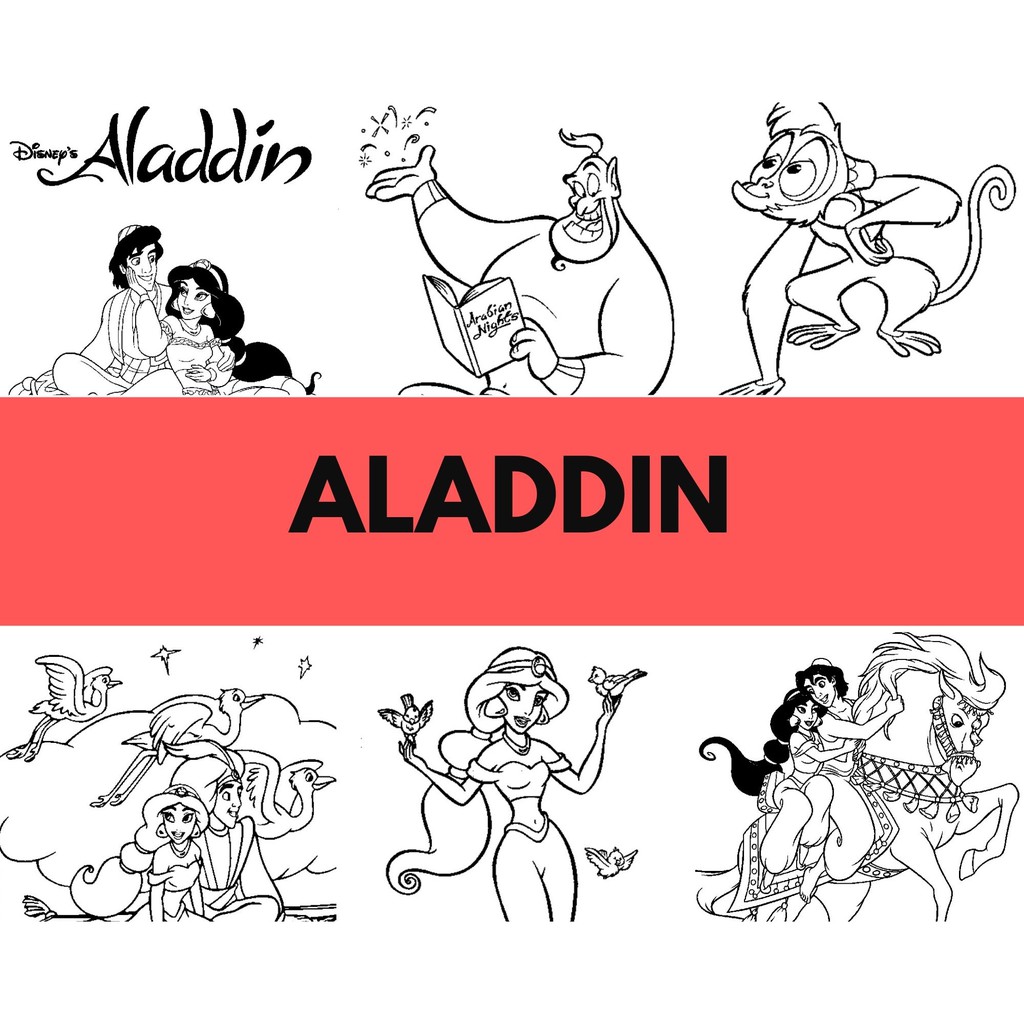 [PDF] 52 pages of printable PDF Disney's Aladdin Colouring / Coloring Book