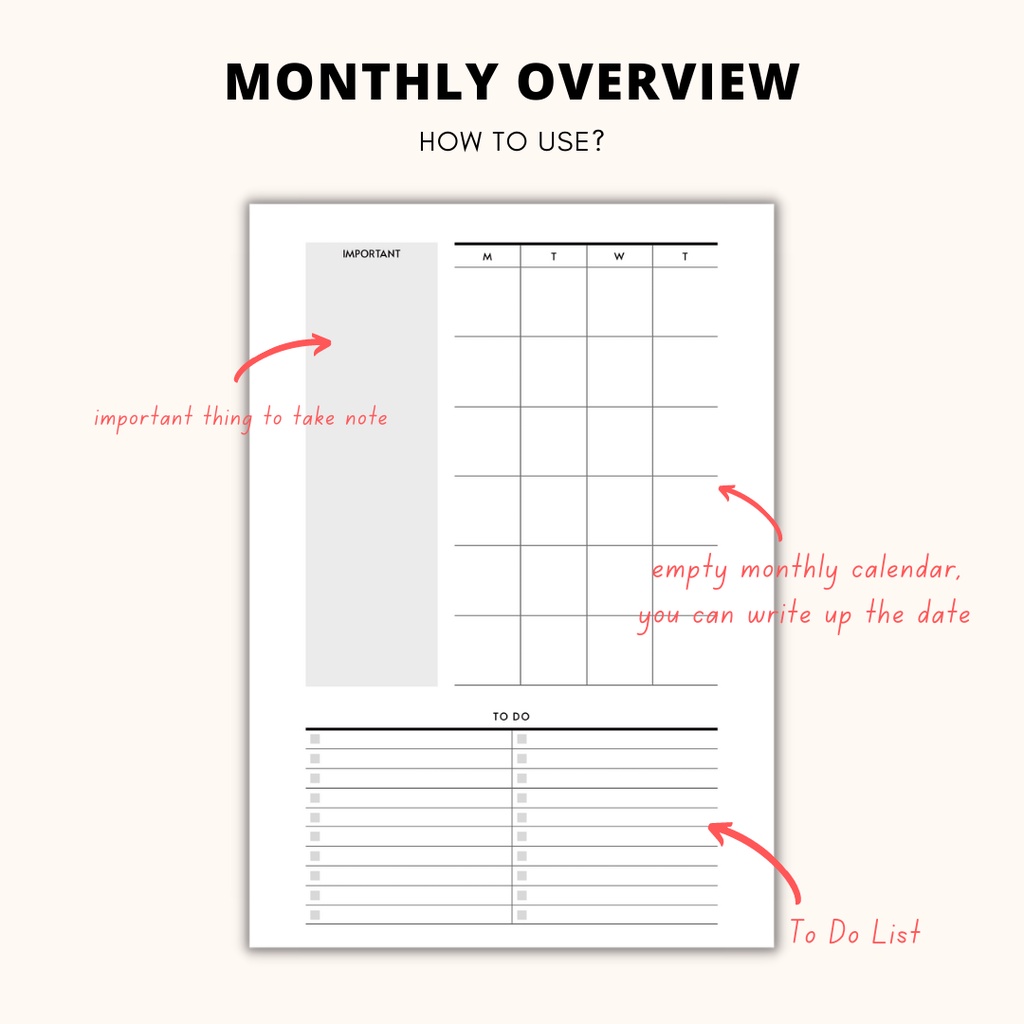 [PDF] Monthly Overview Calendar Planner Template Journal Printable Planner PDF Planner Inserts