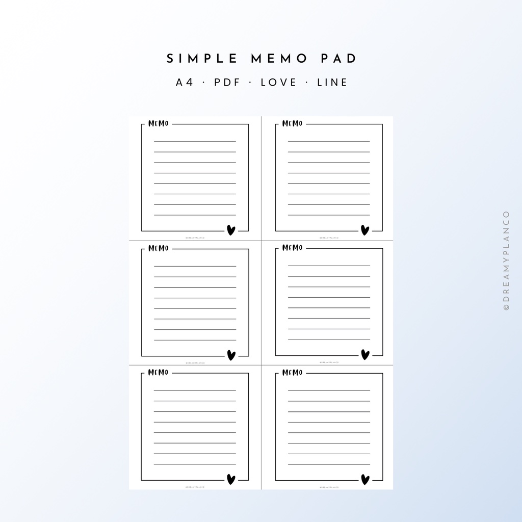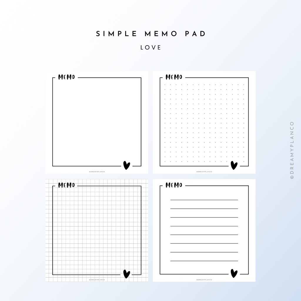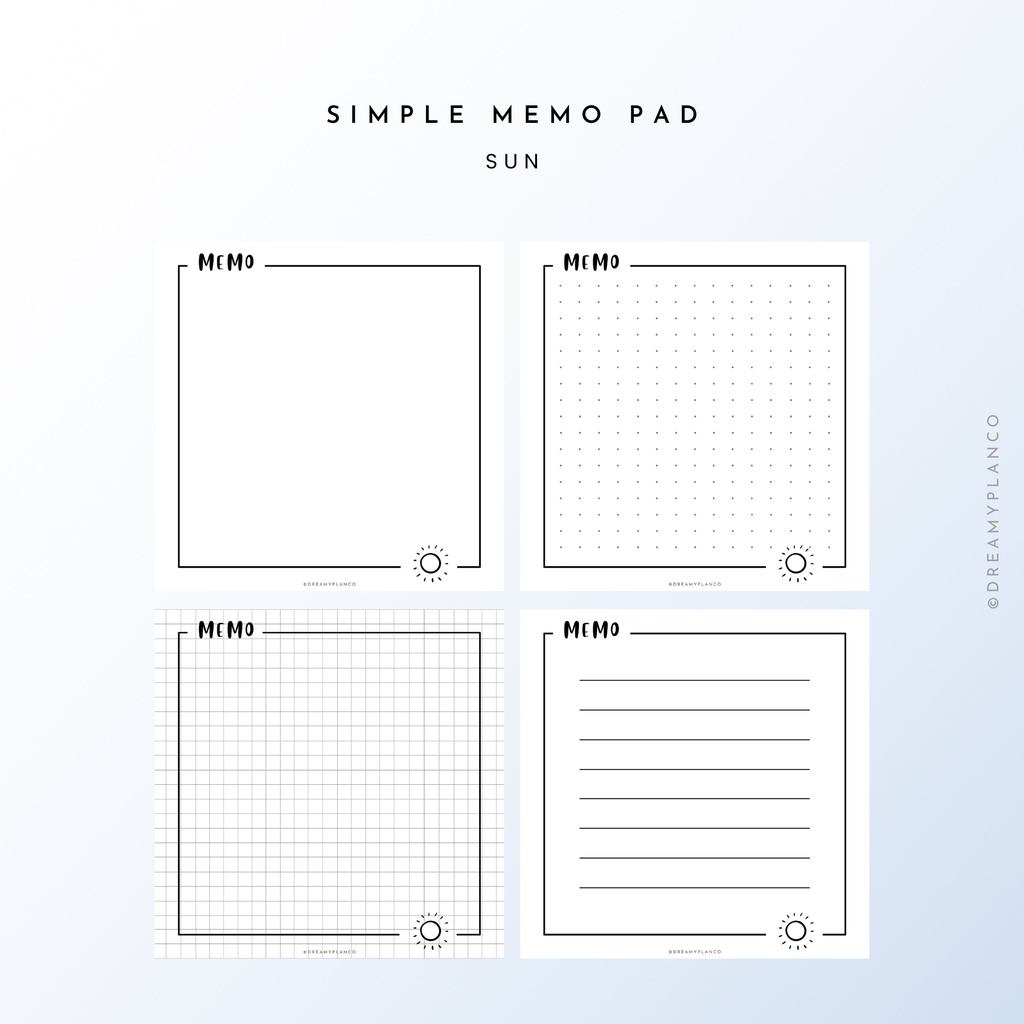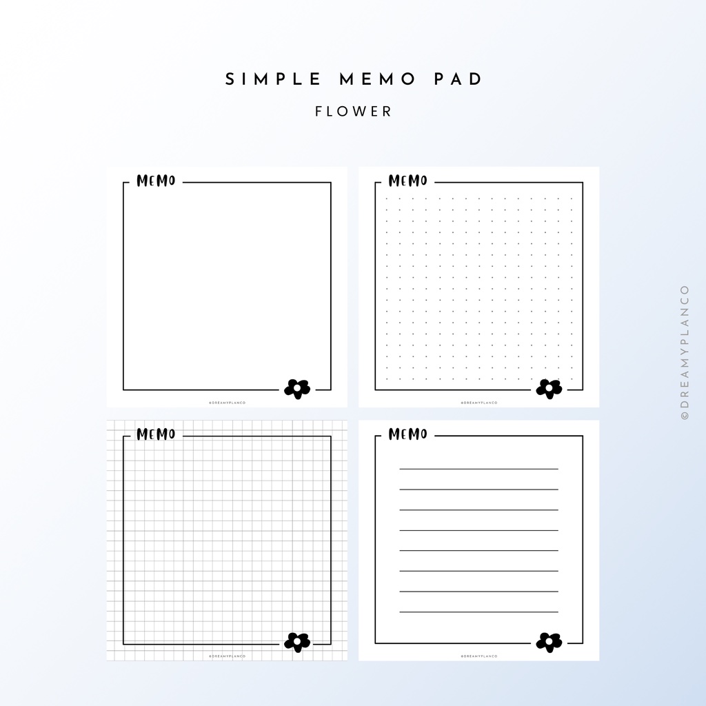 [PDF, PNG] Dreamy Plan Printable Minimalist Simple Memo Pad | 11 Designs | Blank, Dotted, Grid, Line