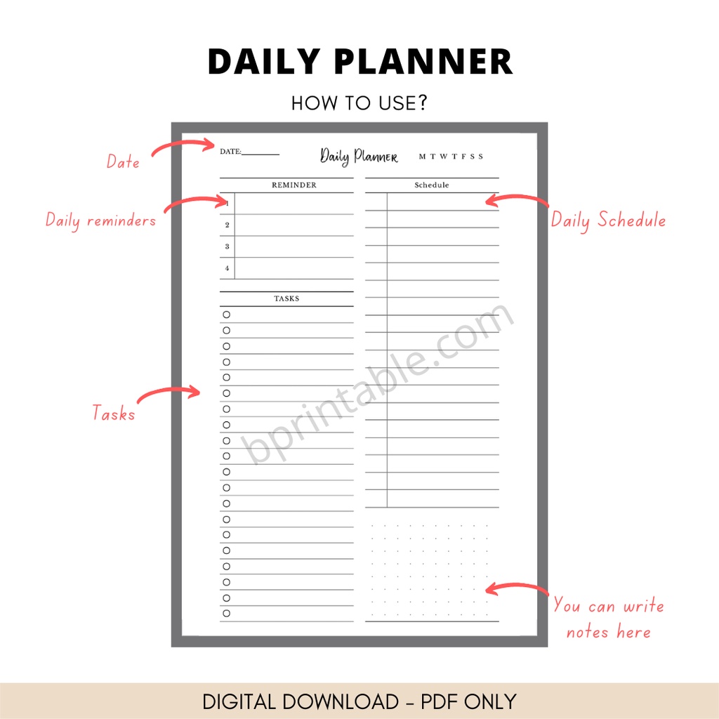 [PDF] Printable Daily Planner Design 2, Journal Template Printable Planner Refill PDF A4 A5
