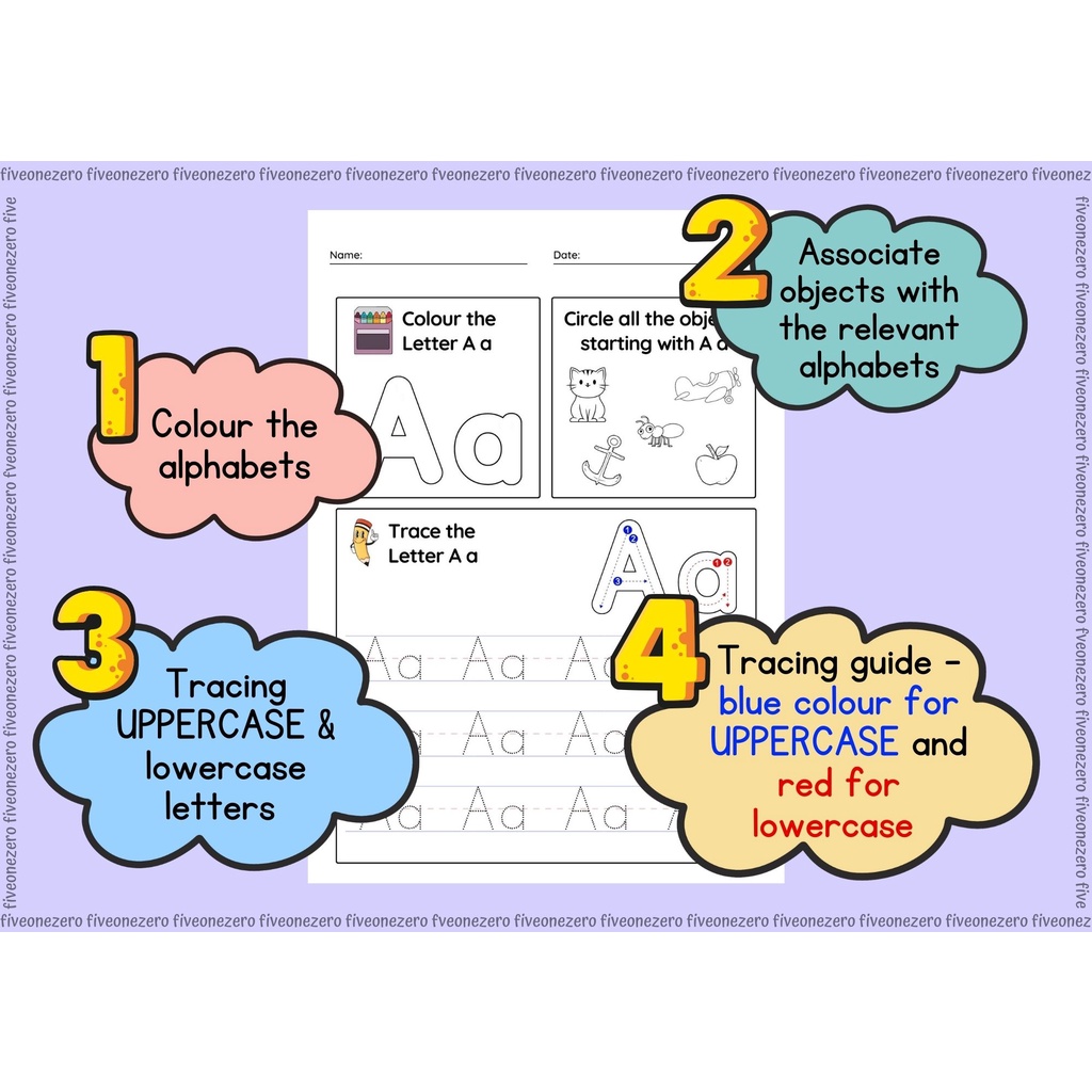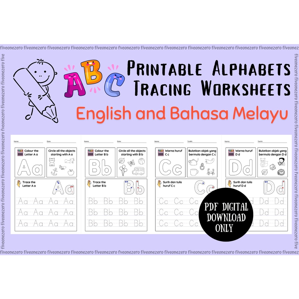 [PDF Softcopy] Lembaran Kerja Prasekolah Bahasa Melayu ABC; ABC letter tracing worksheets; preschool, with tracing guide