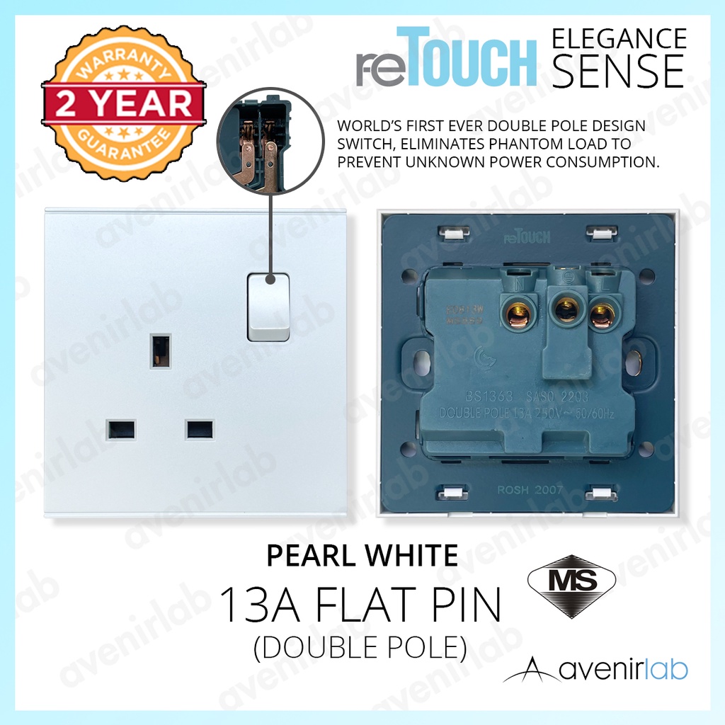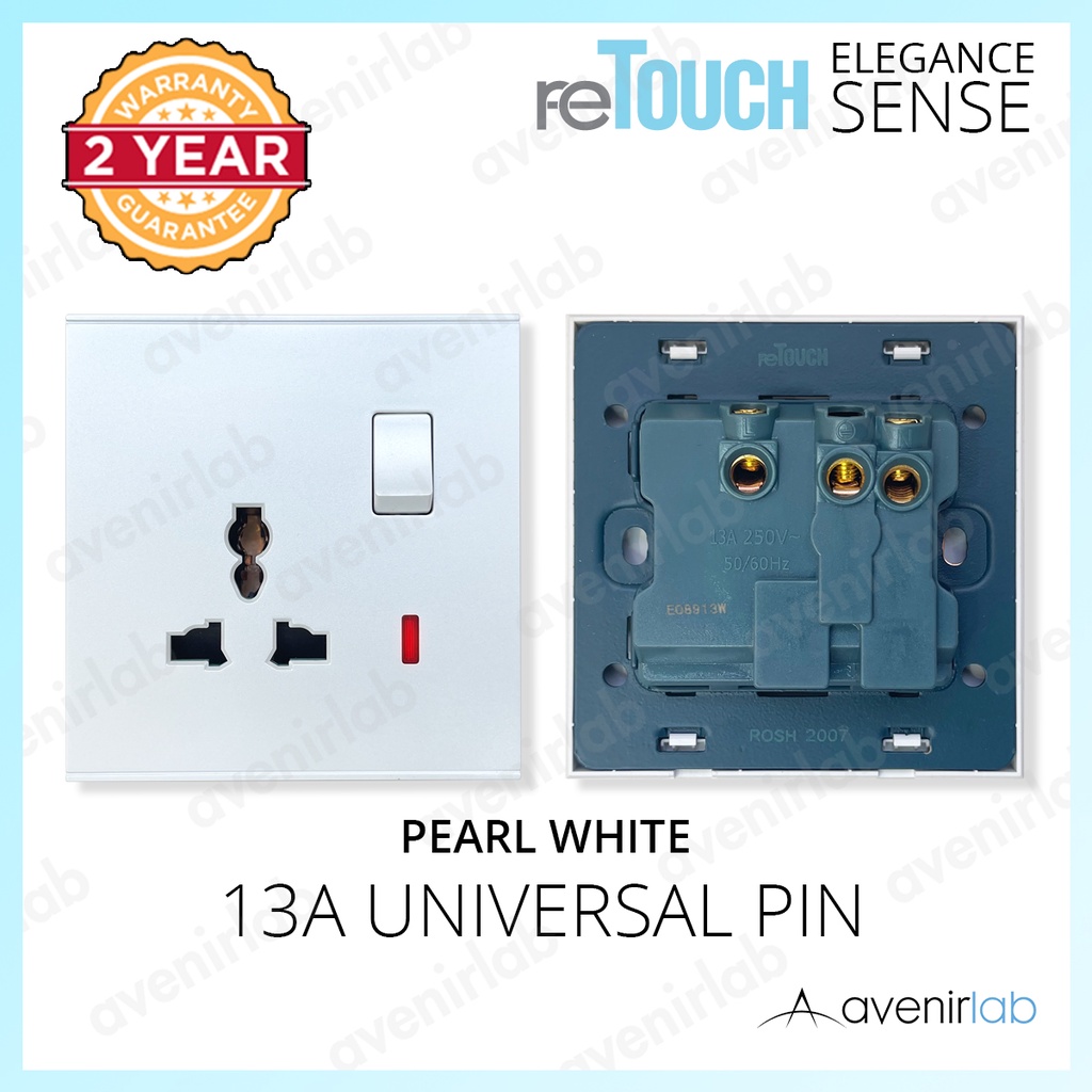 [PEARL WHITE] reTouch Switch Elegance Sense 16A Wall Switch 13A 15A 20A Socket Plug Data TV Astro Outlet SIRIM Approved