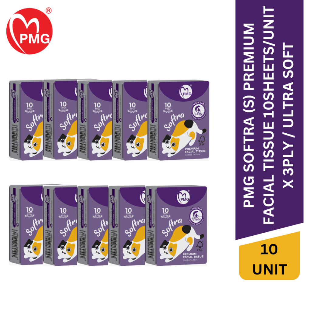 [PMG PHARMACY] PMG Softra (S) Premium Facial Tissue 10Sheets/Unit X 3ply / Ultra Soft ( 10 Unit )
