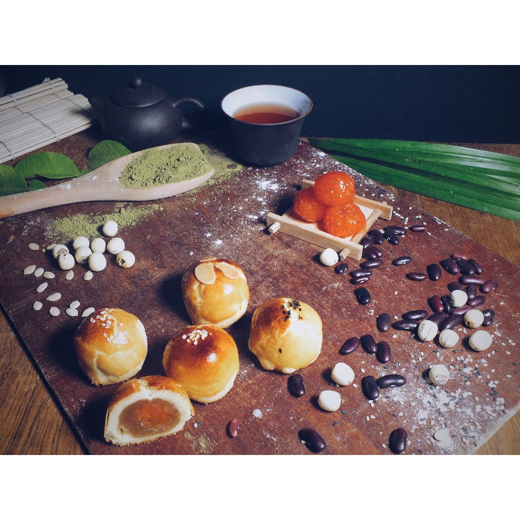 [PORK-FREE] HEJIA Shanghai Mooncake - GreenTea (6Pcs/Box) | 合家上海月饼 绿茶莲蓉 (六粒装)