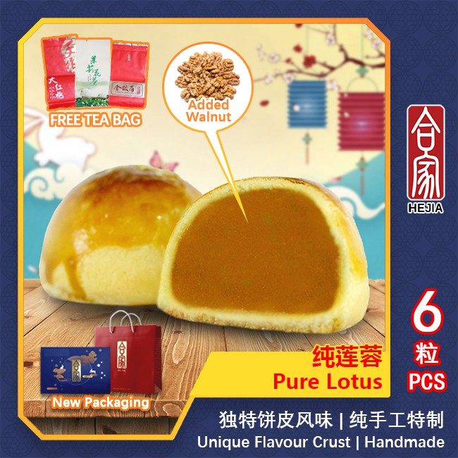 [PORK-FREE] HEJIA Shanghai Mooncake - Pure Lotus (6PCS/Box) | 合家上海月饼 纯莲蓉 (六粒装)
