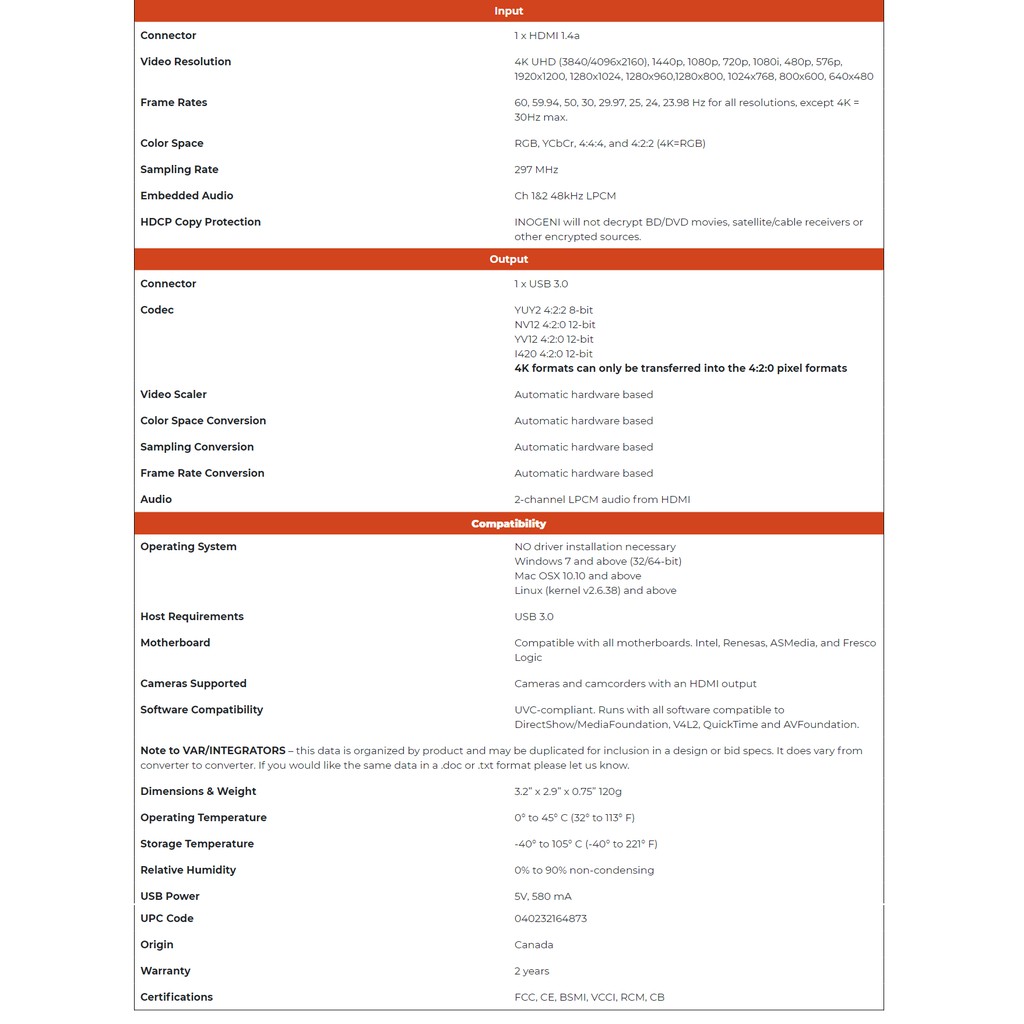[PRE-ORDER] INOGENI 4K2USB3 4K Ultra HD to USB 3.0 Capture Card / Converter