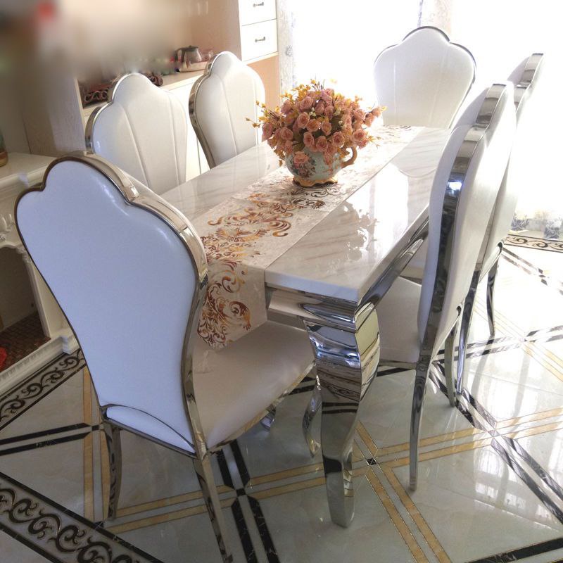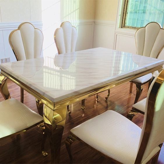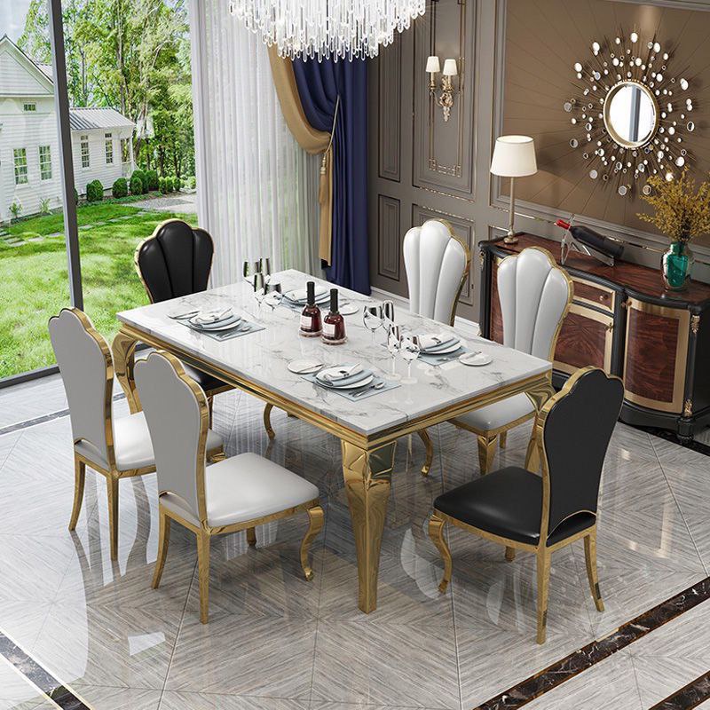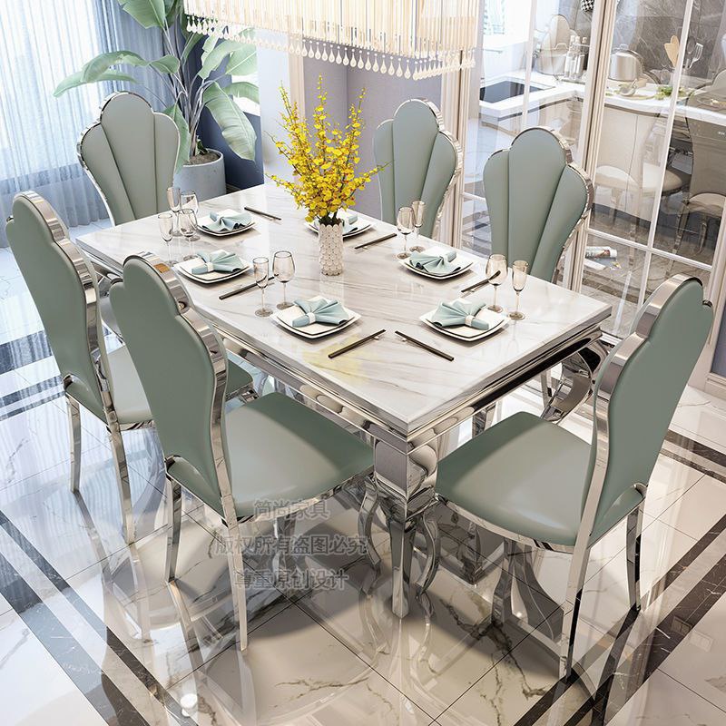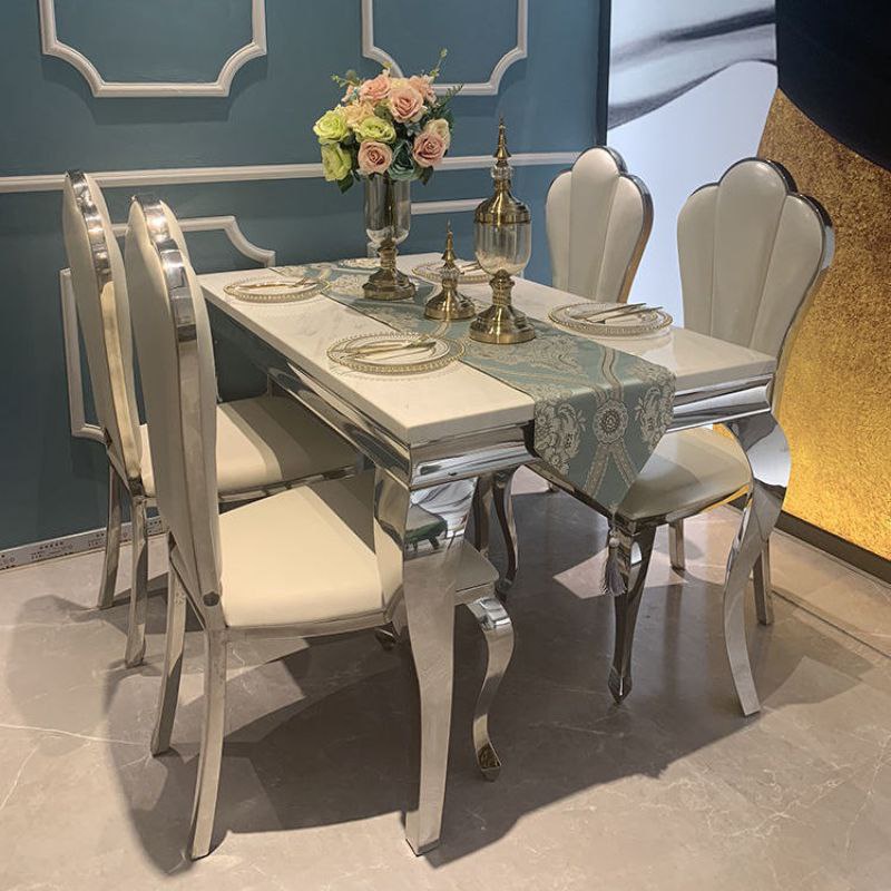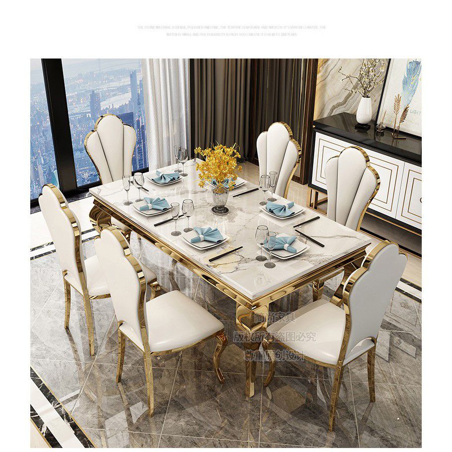 [PRE ORDER] SASHI Dining Table Set Luxury Nordic Stainless Steel Slate Mercedes Leg Marble Office Table Meja Makan