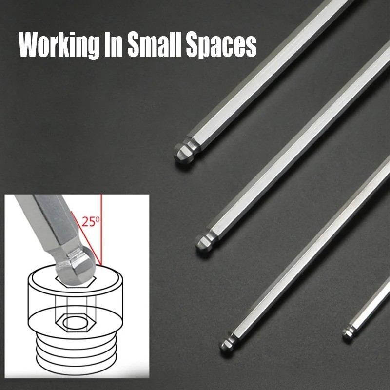 [PVC BOX] EXTRA LONG 9 PCS BALL POINT ALLEN KEY WRENCH SET / CHROME ALLEN KEY SET Tools Screwdriver Spanner