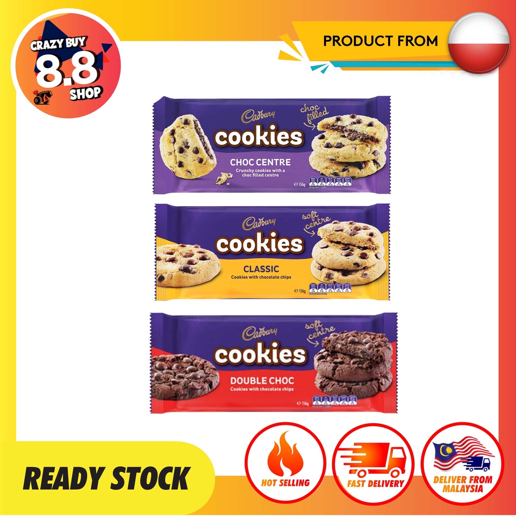[Poland] Cadbury Cookies Choc Centre / Classic / Double Choc 156g Crunchy Cookies with A Choc Centre (Stok Tersedia )