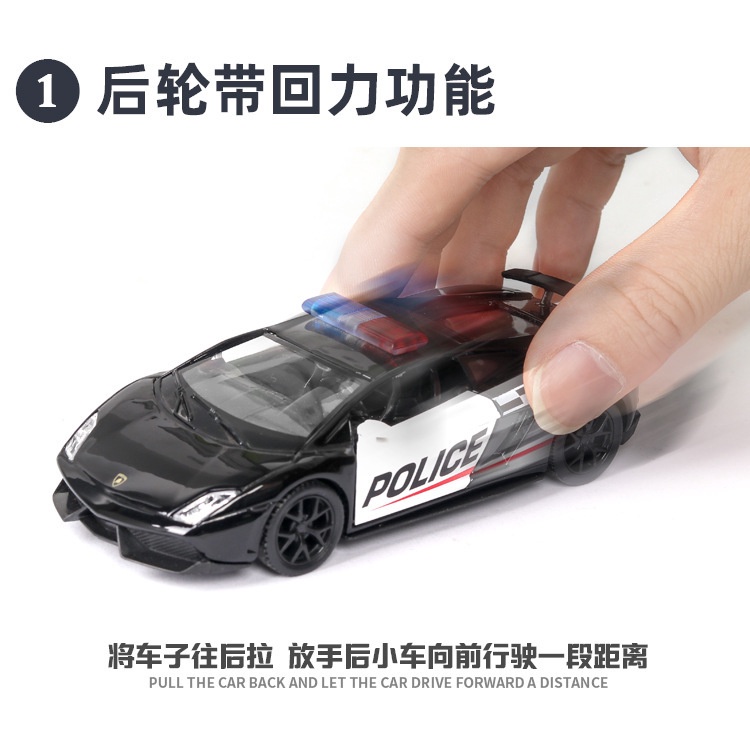 [Police Car]Diecast Car Model Metal Pull Back Car Diecast Model Toy Vehicle Sound Light [1:36] Scale
