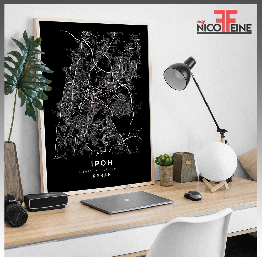 [Poster Only] Ipoh Perak Minimal Map Art Black Background Travel Tourism Art Large Poster Print / Wall Art