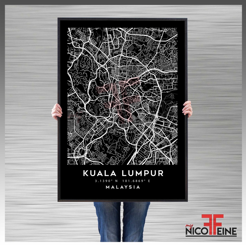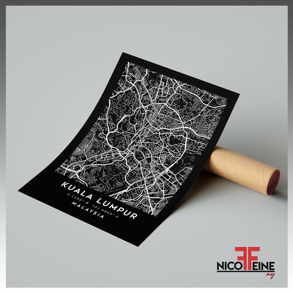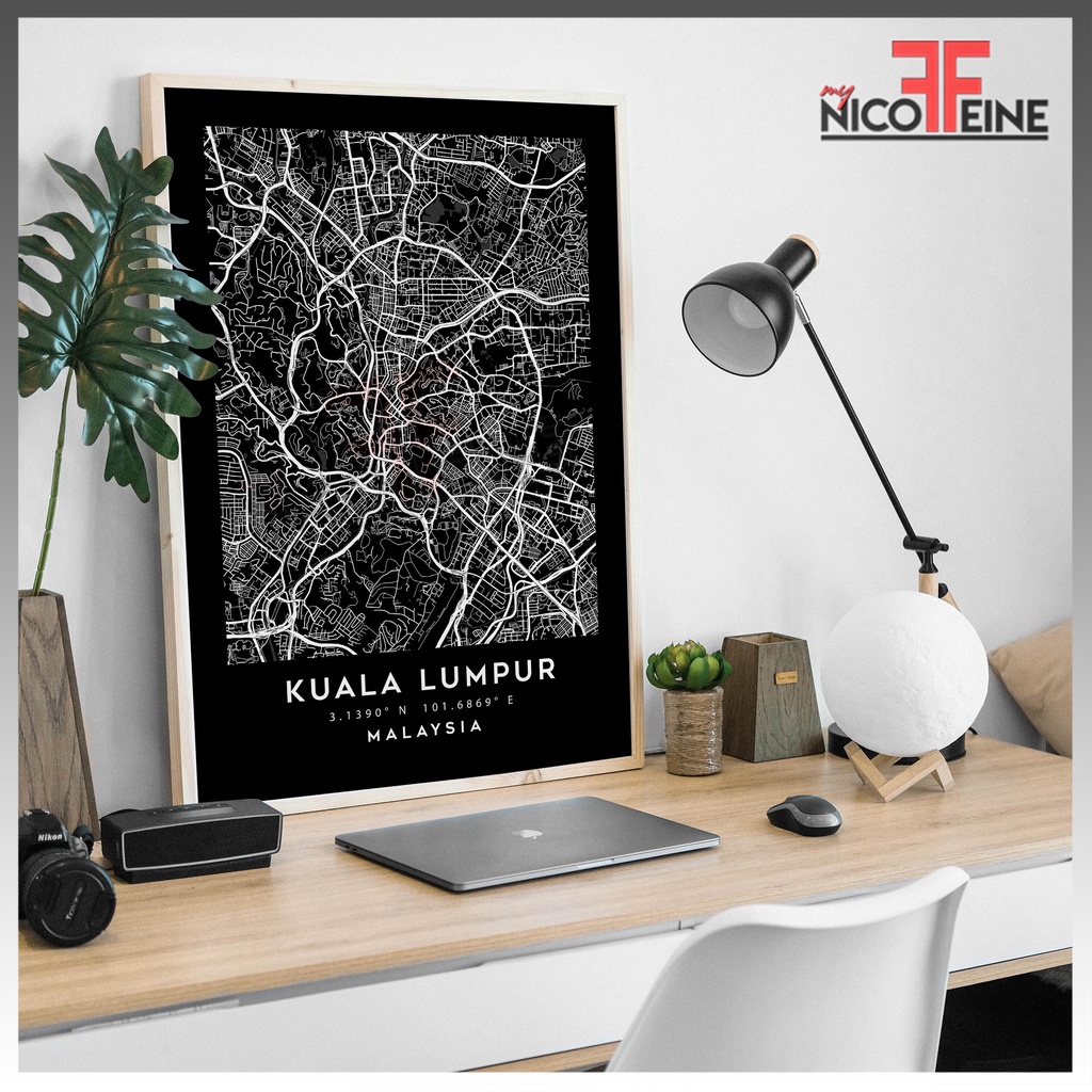 [Poster Only] Kuala Lumpur Malaysia Minimal Map Art Black Background Travel Tourism Art Large Poster Print / Wall Art