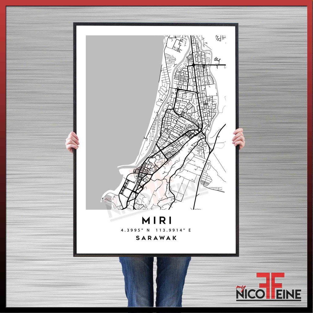 [Poster Only] Miri Sarawak Minimal Map Black and White Travel Tourism Art Large Poster Print / Wall Art