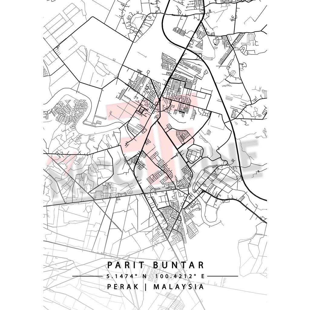 [Poster Only] Parit Buntar Perak Minimal City Map Art Black Grey and White Travel Tourism Large Poster Print / Wall Art