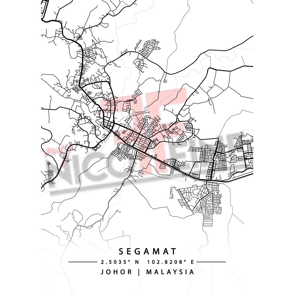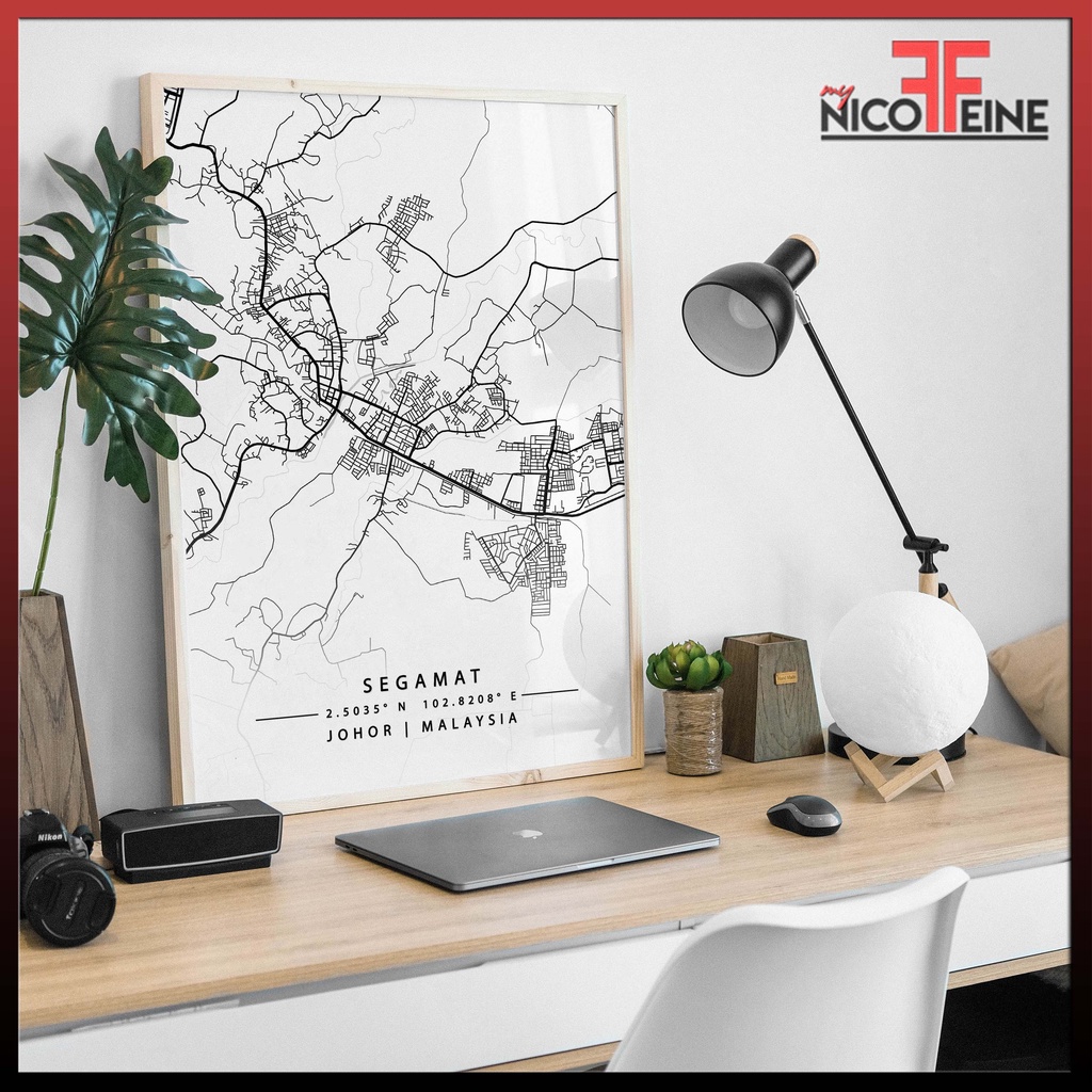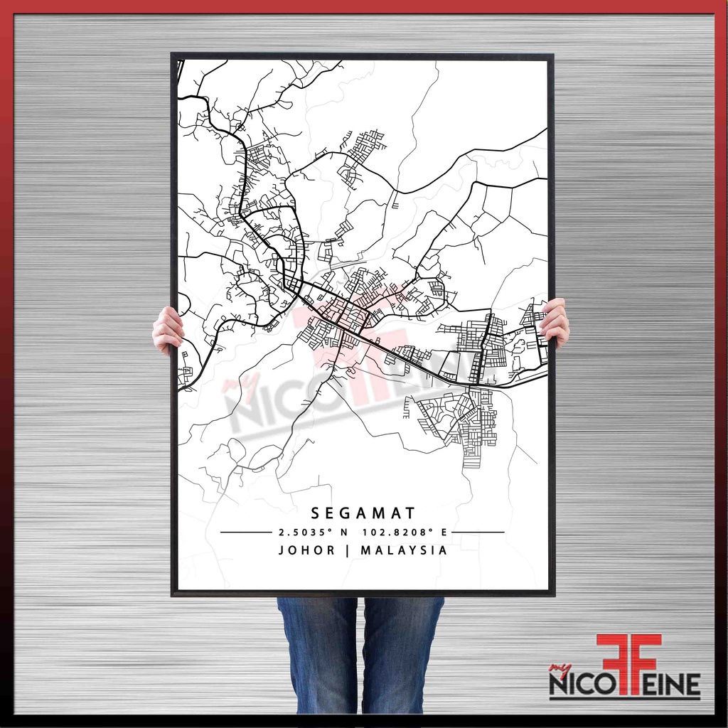 [Poster Only] Segamat Johor Minimal City Map Art Black Grey and White Travel Tourism Large Poster Print / Wall Art