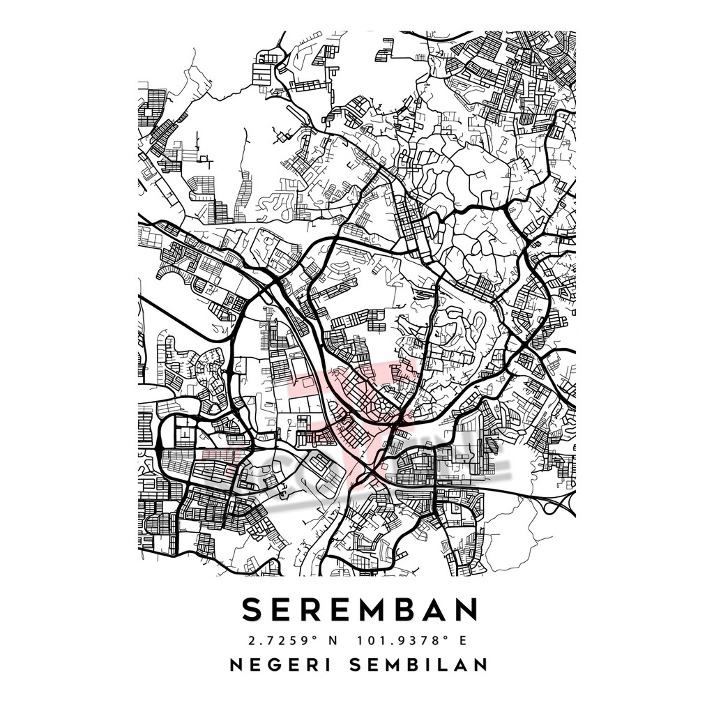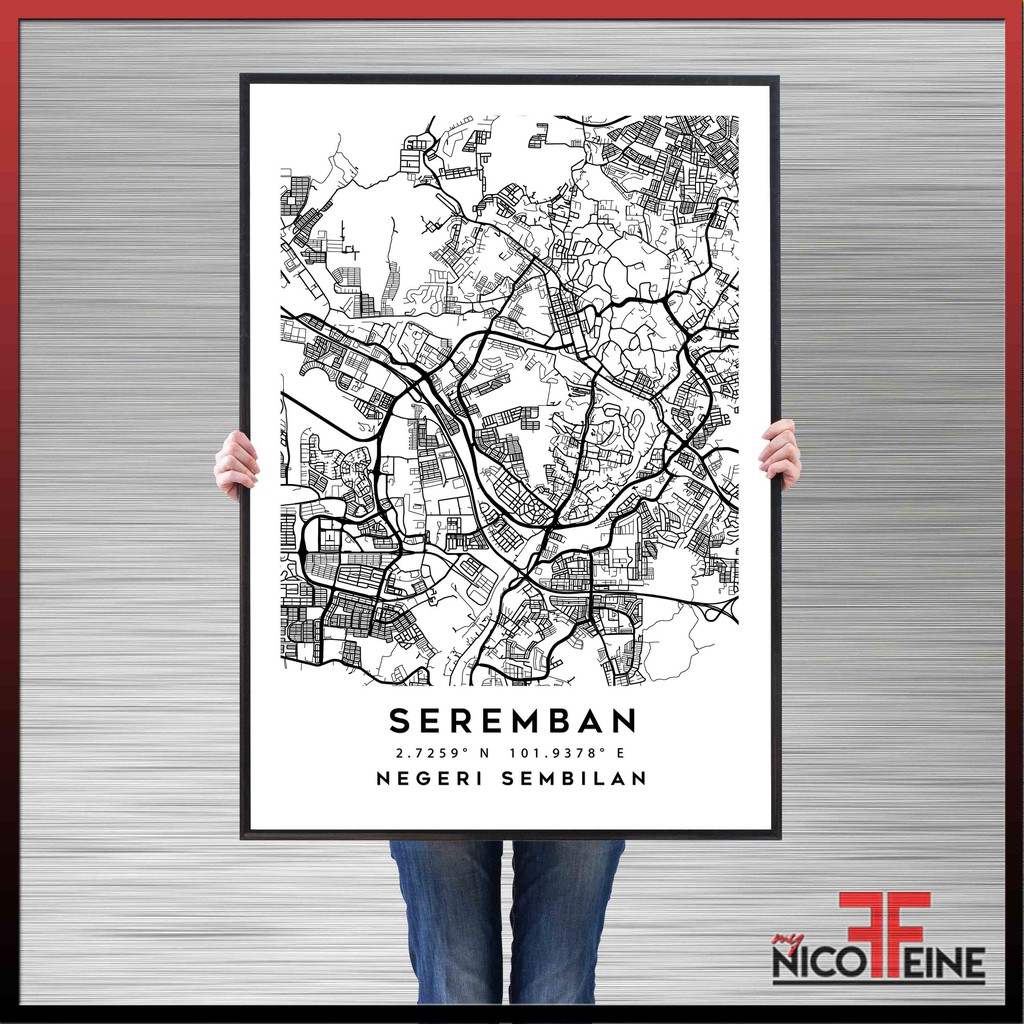 [Poster Only] Seremban Negeri Sembilan Minimal City Map Art Black and White Large Poster Print / Wall Art