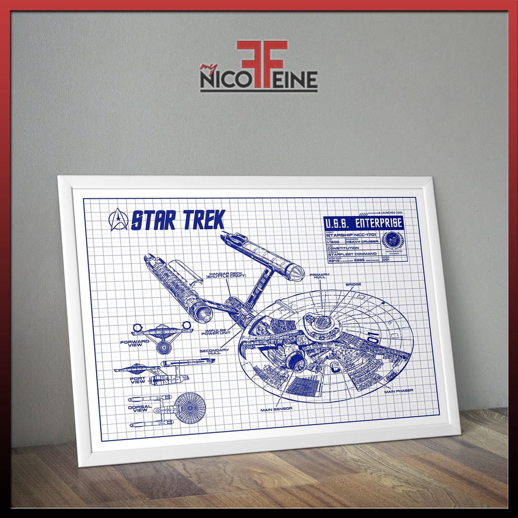 [Poster Only] Star Trek USS Enterprise Patent Art Starship Spacecraft Large Poster Print / Wall Art