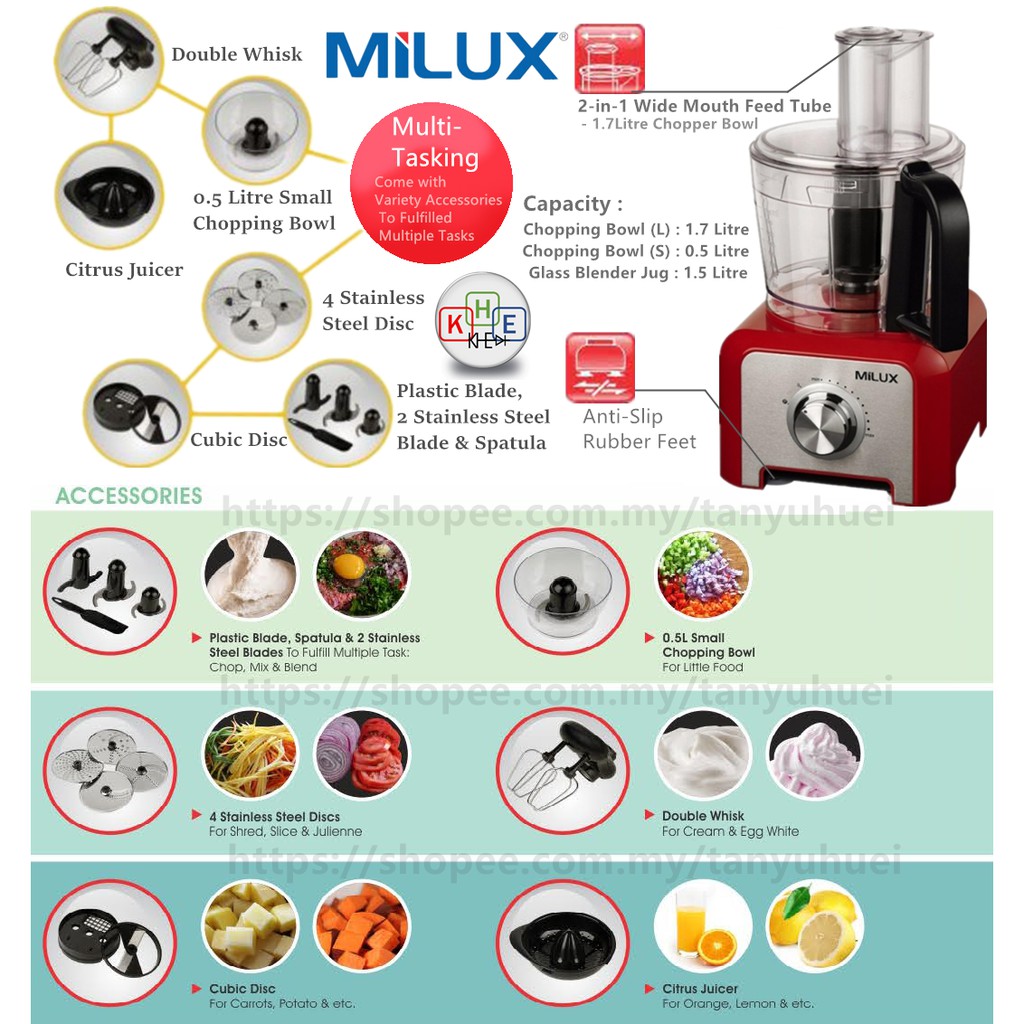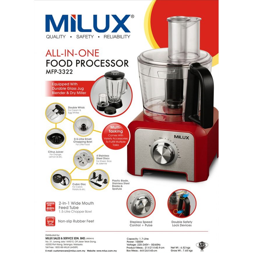 Milux All in 1 Multi Function Food Processor Blender 1000W MFP-3322