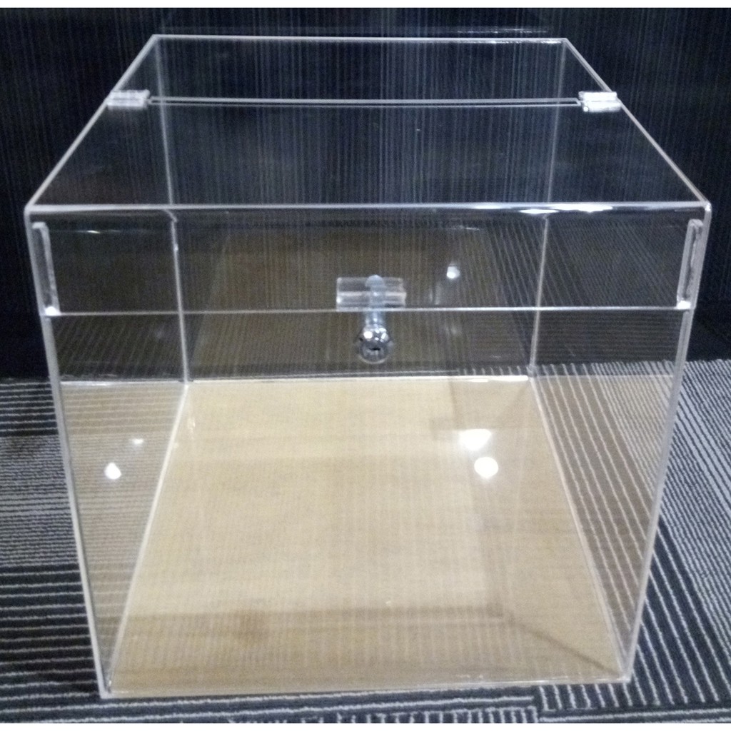 [ Pre Order ] 15 x 15 x 15in Acrylic Tender Box With Top Centre Hinges With Cam-Lock, 3.0mm