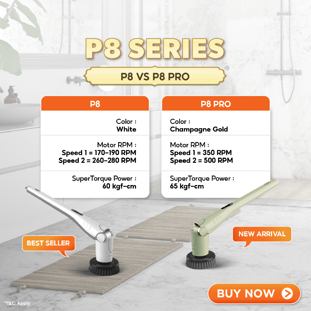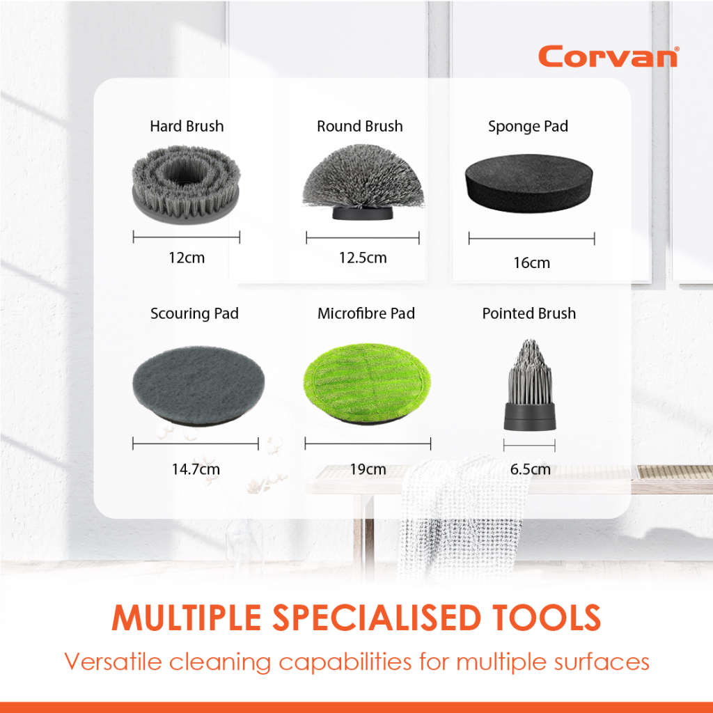 Corvan P8/P8Pro Electric Cleaning Brush | Power Scrubber | 65kgf.cm Super Torque | Waterproof | Auto