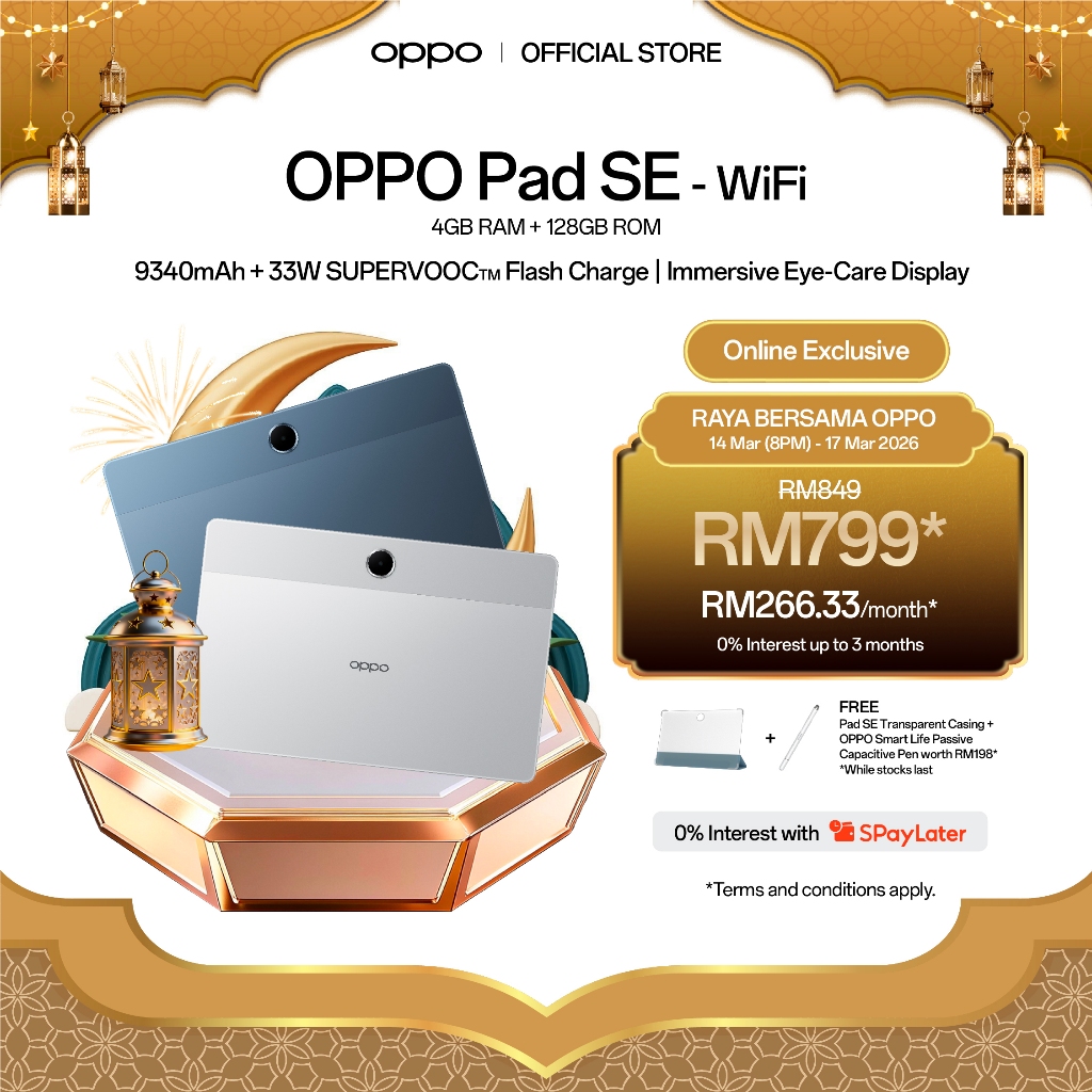 [Online Exclusive] OPPO Pad SE Tablet | WiFi 4+128GB | 9340mAh | 33W SUPERVOOC | Immersive Eye-Care Display
