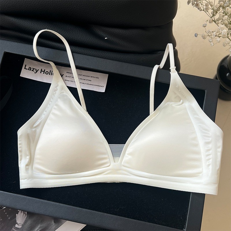 [Queen Secret] High-Quality Deep-V Thin Jelly Triangle Cup Bra - Women's Seamless Wireless Design for Small Busts