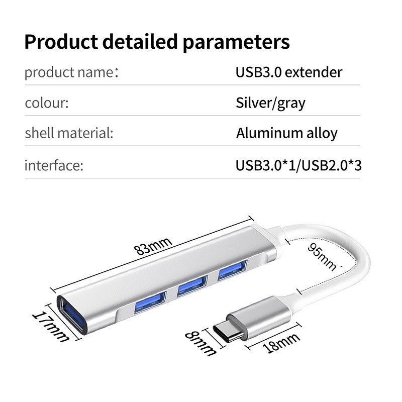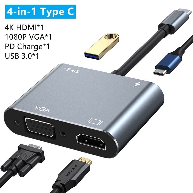 [READY IN MY]USB Port Extension USB Hub 3.0 USB Extender USB Splitter High Speed Hab Type C to HIDM VGA With Laptop