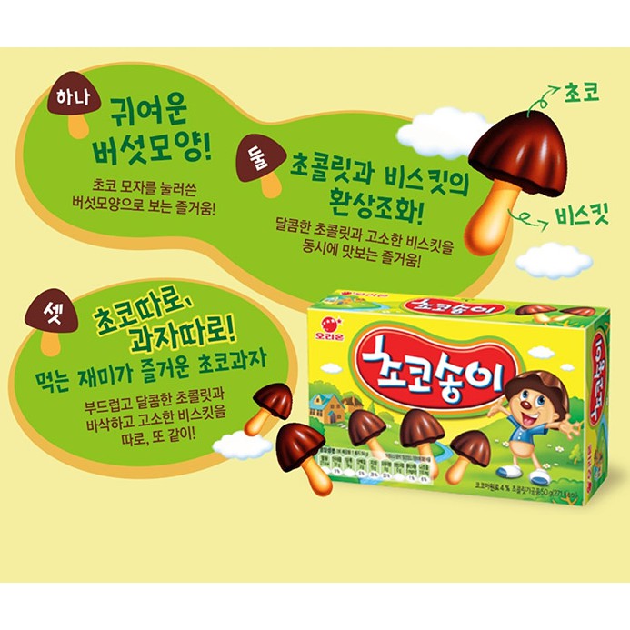 [READY STOCK!!!] Korean snacks food ORION Chocolate Mushroom Cookies CHOCO SONGI 50G