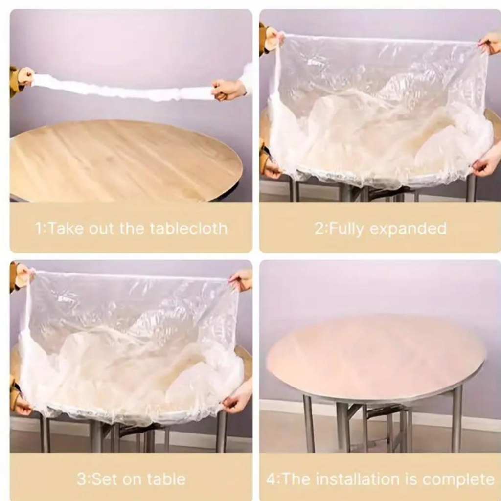 [ READY STOCK ] 10pcs Disposable Plastic Table Cover Waterproof Tablecloth Elastic Band