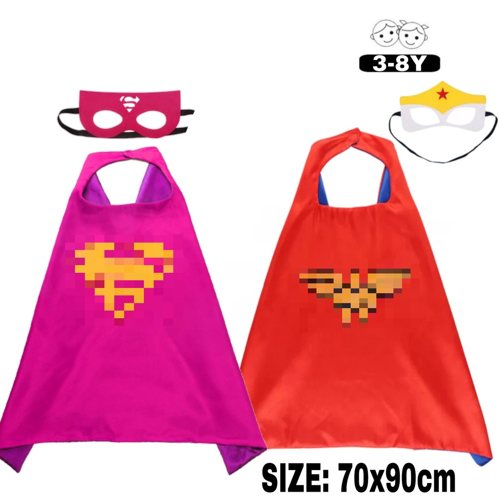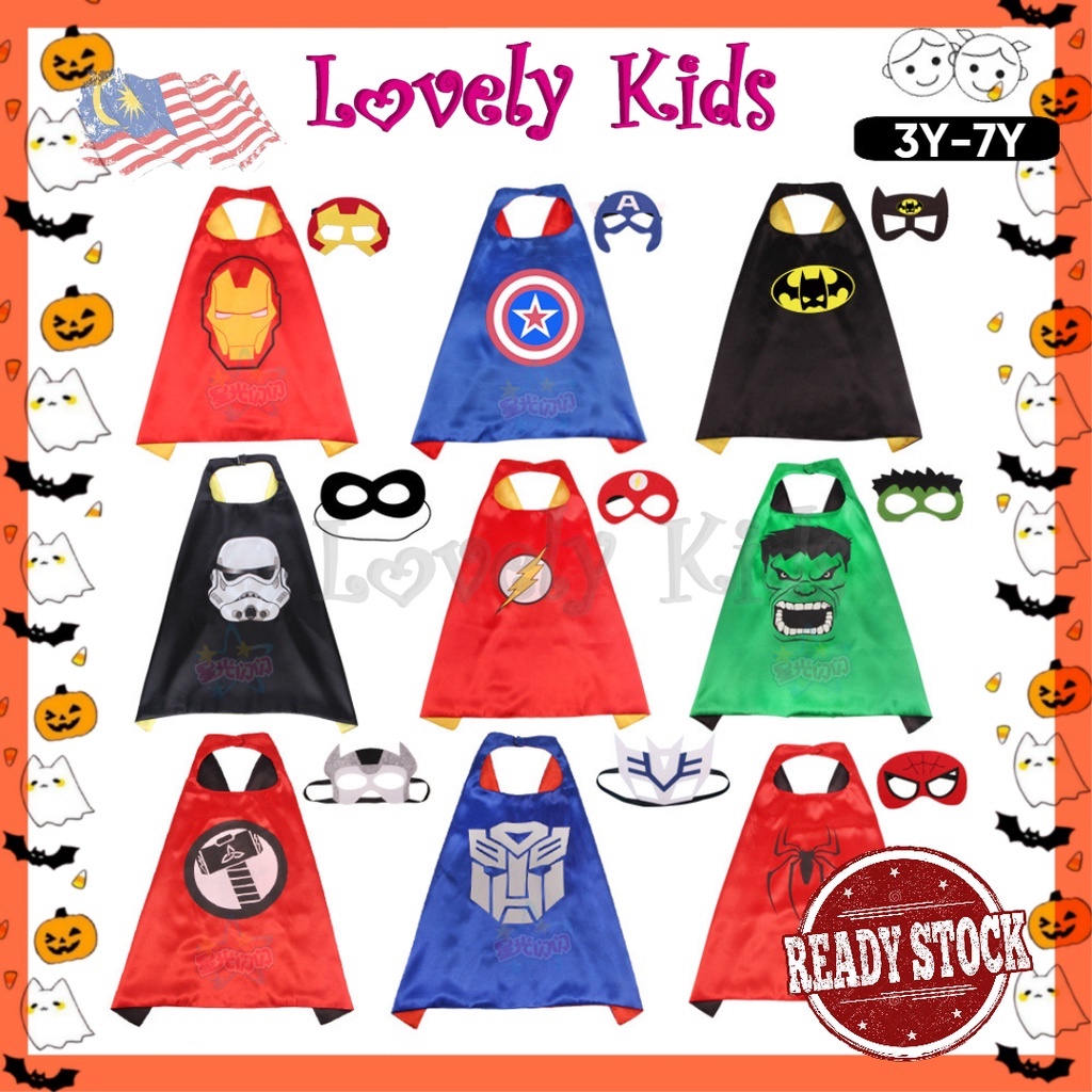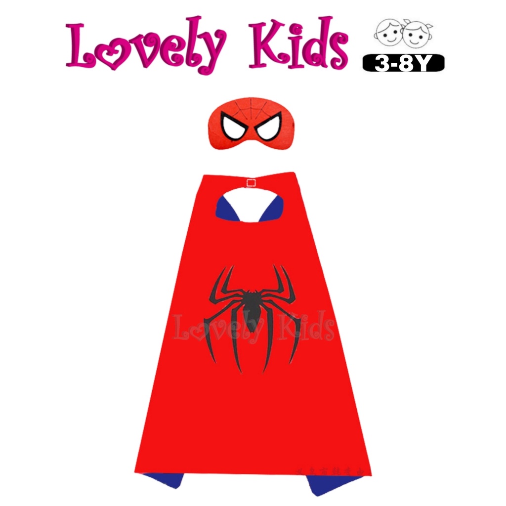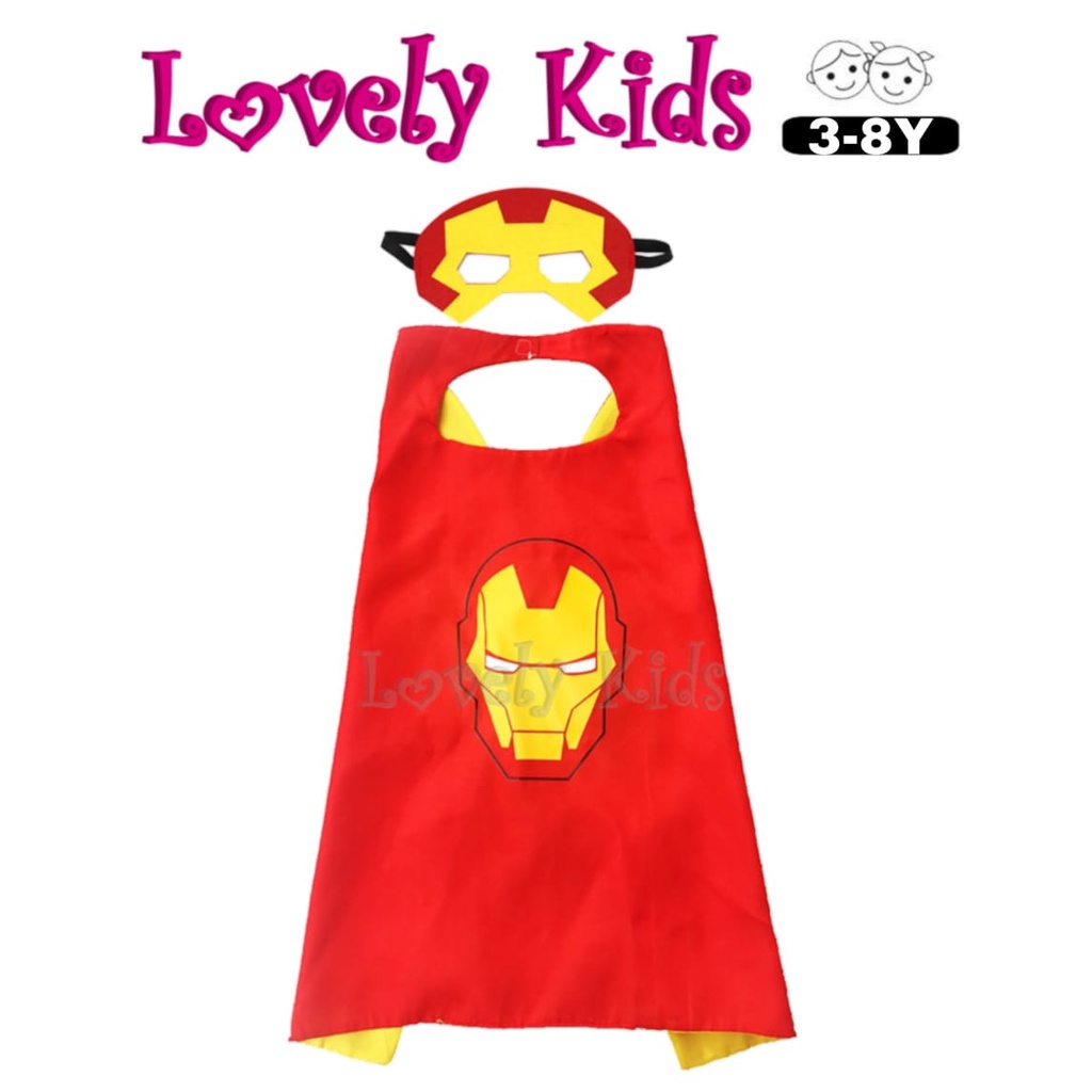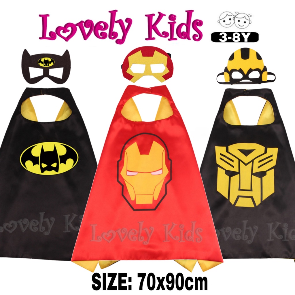 [READY STOCK] 3-7Y Kids Costume Superhero Cape with Mask Super-Man/ Captain / Wonder W / Spiderman/ Ironman/Thor