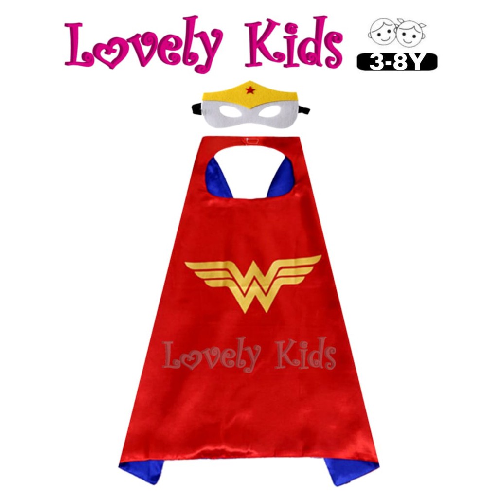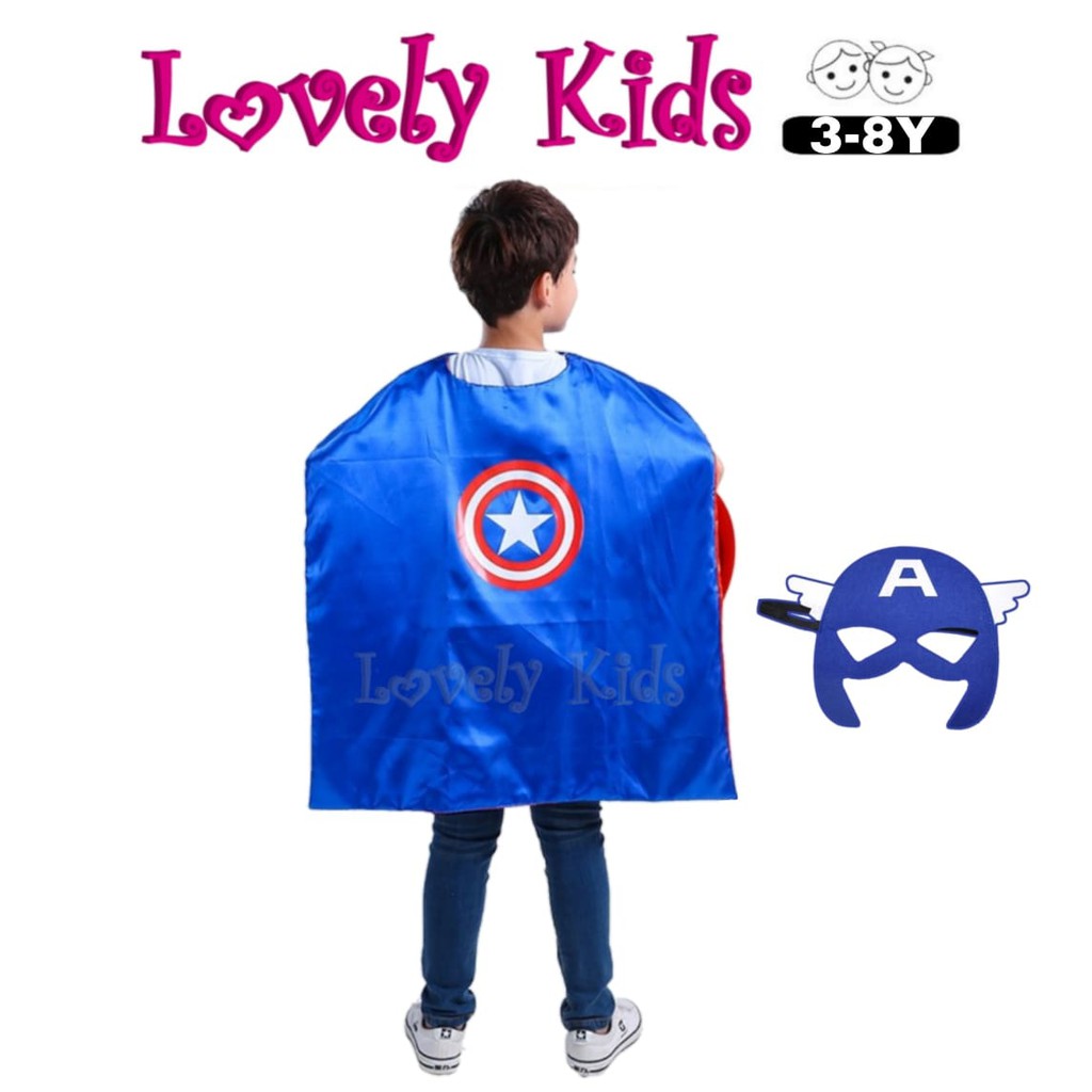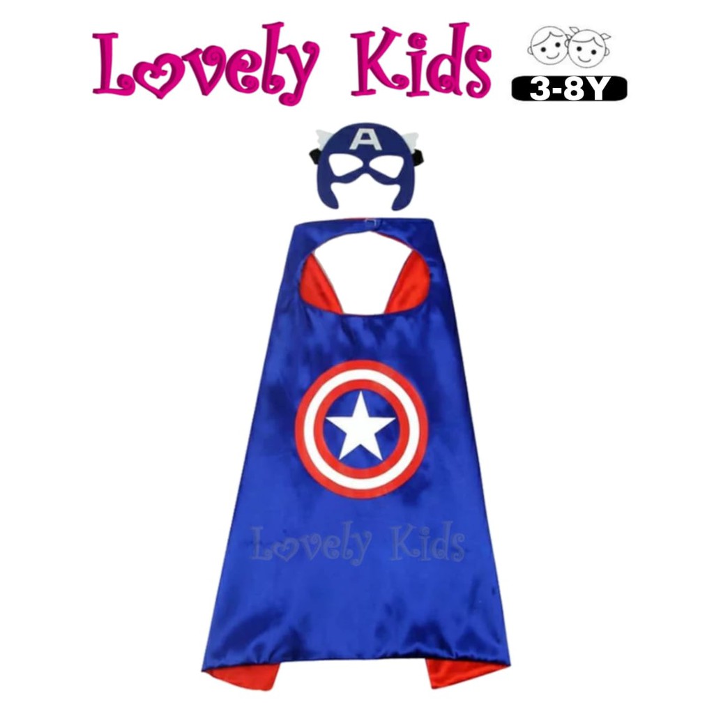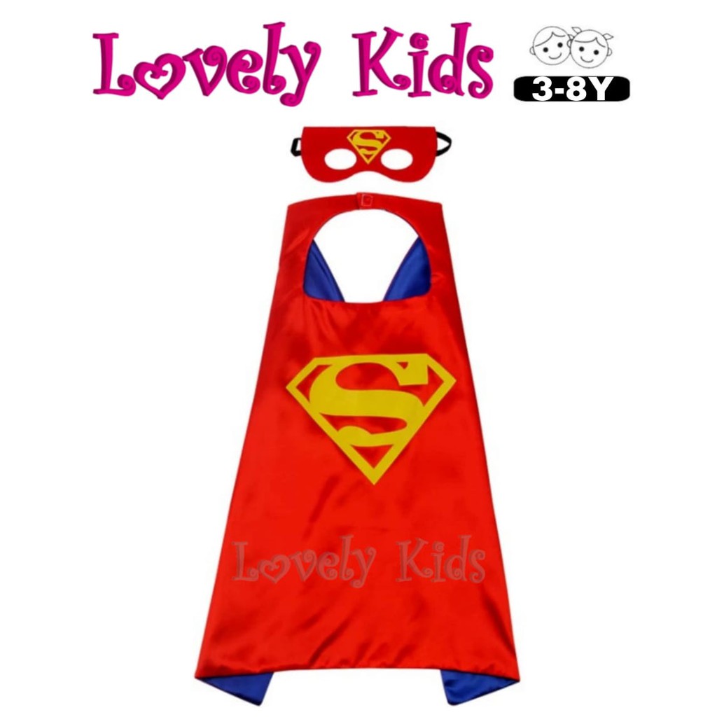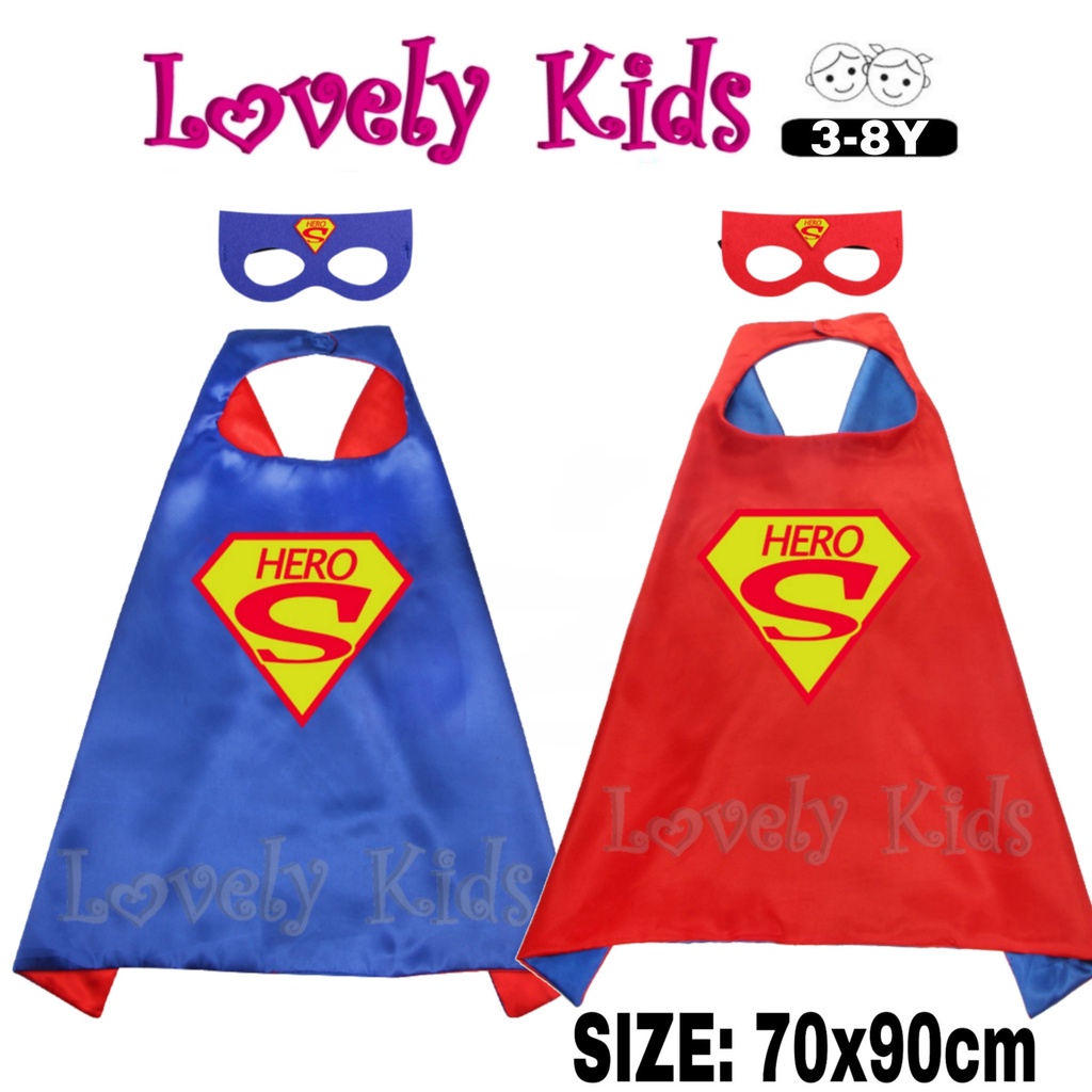 [READY STOCK] 3-7Y Kids Costume Superhero Cape with Mask Super-Man/ Captain / Wonder W / Spiderman/ Ironman/Thor