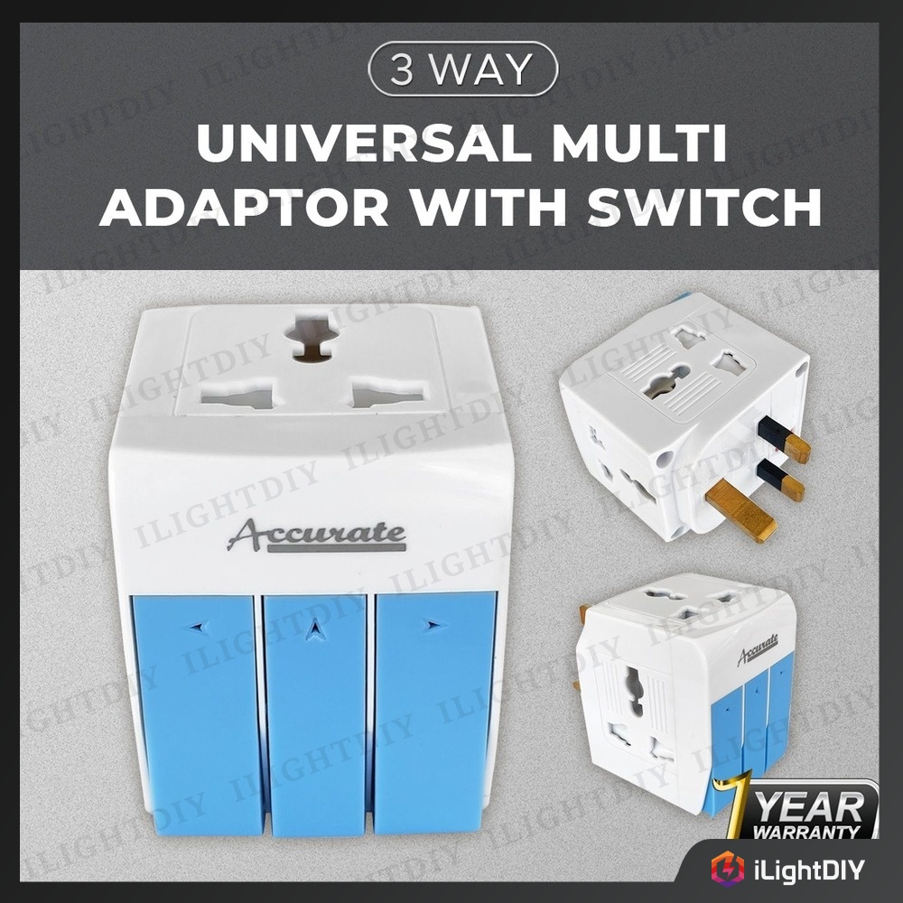 <READY STOCK>3 WAY UNIVERSAL MULTIPLE ADAPTOR 13A 3 PIN UK PLUG EXTENSION SOCKET WITH INDIVIDUAL SWITCH & NEON INDICATOR