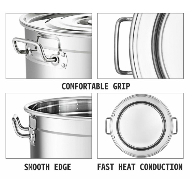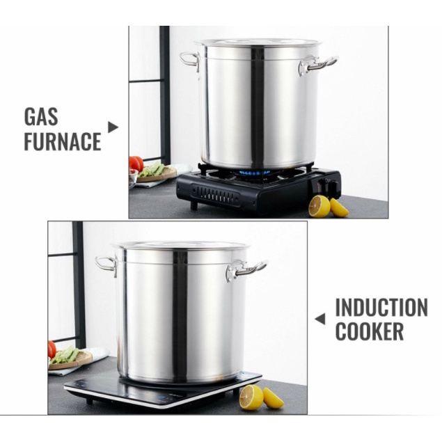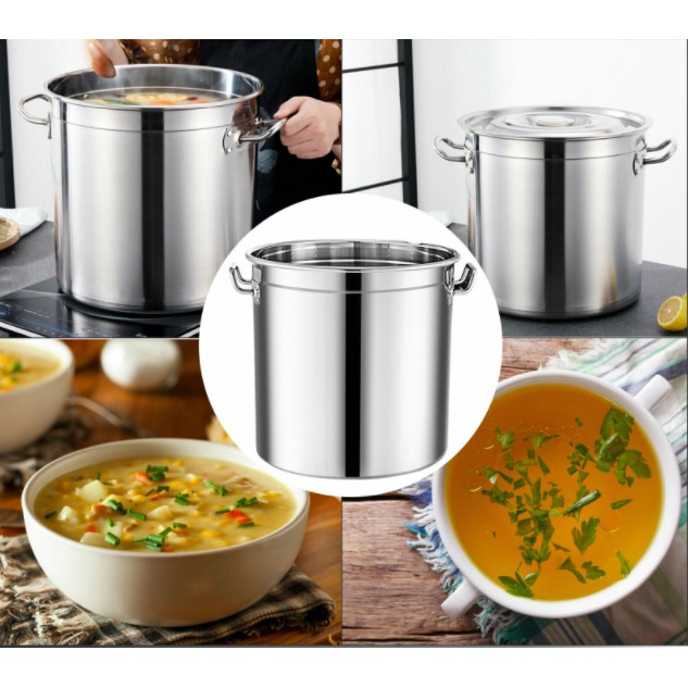 [READY STOCK] 30cm TO 40cm Stainless Steel Stock Pot Kitchen Soup Stockpot with Lid (2.5mm)