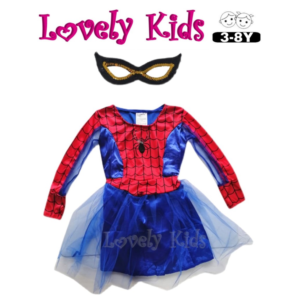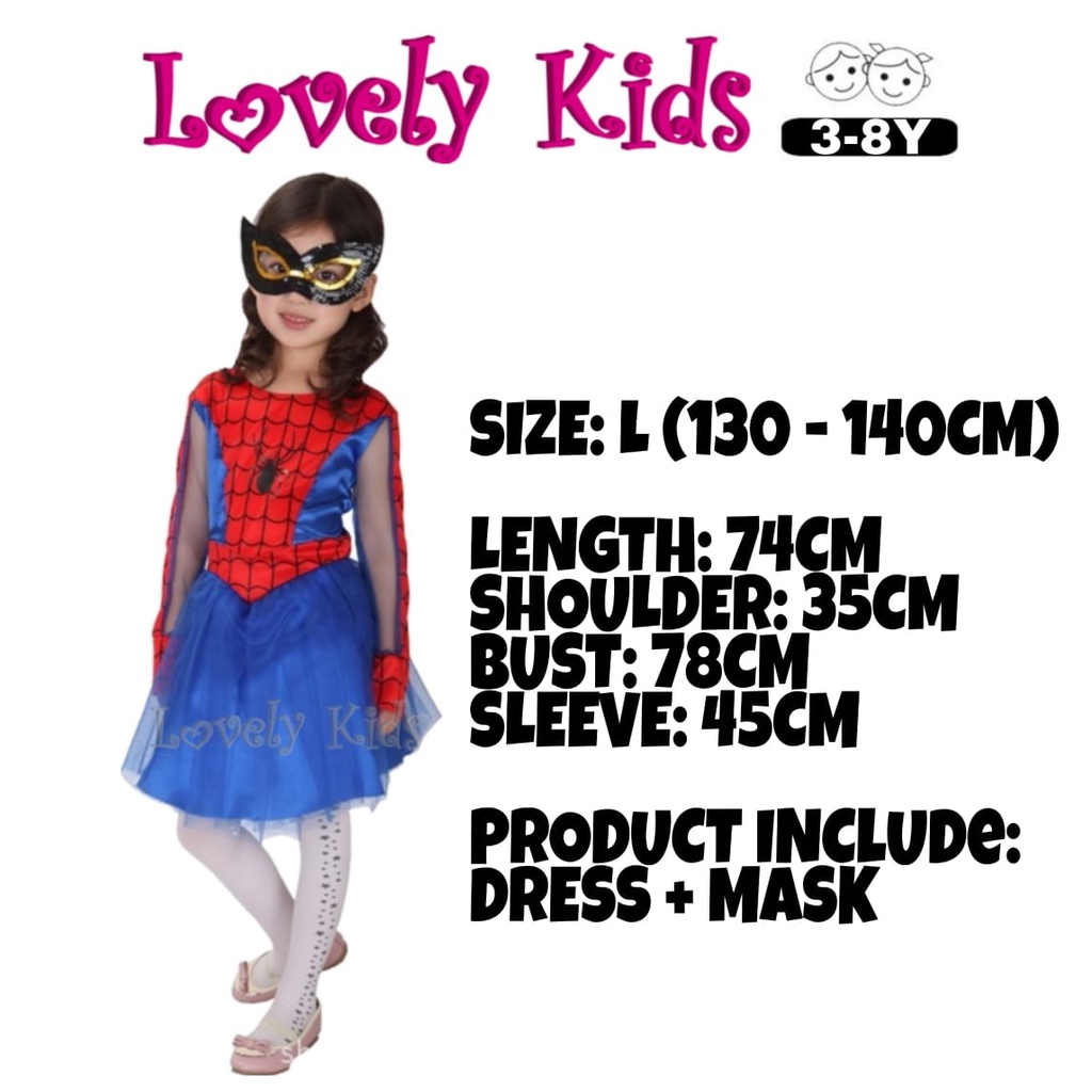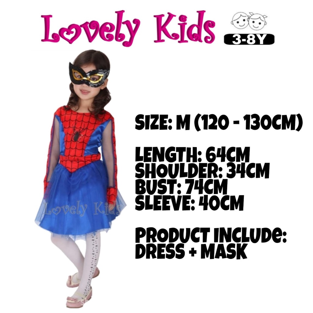 [READY STOCK] 3y-8y Kids Costume Spider Girl Spiderman Girl Superhero Halloween Costume Cosplay