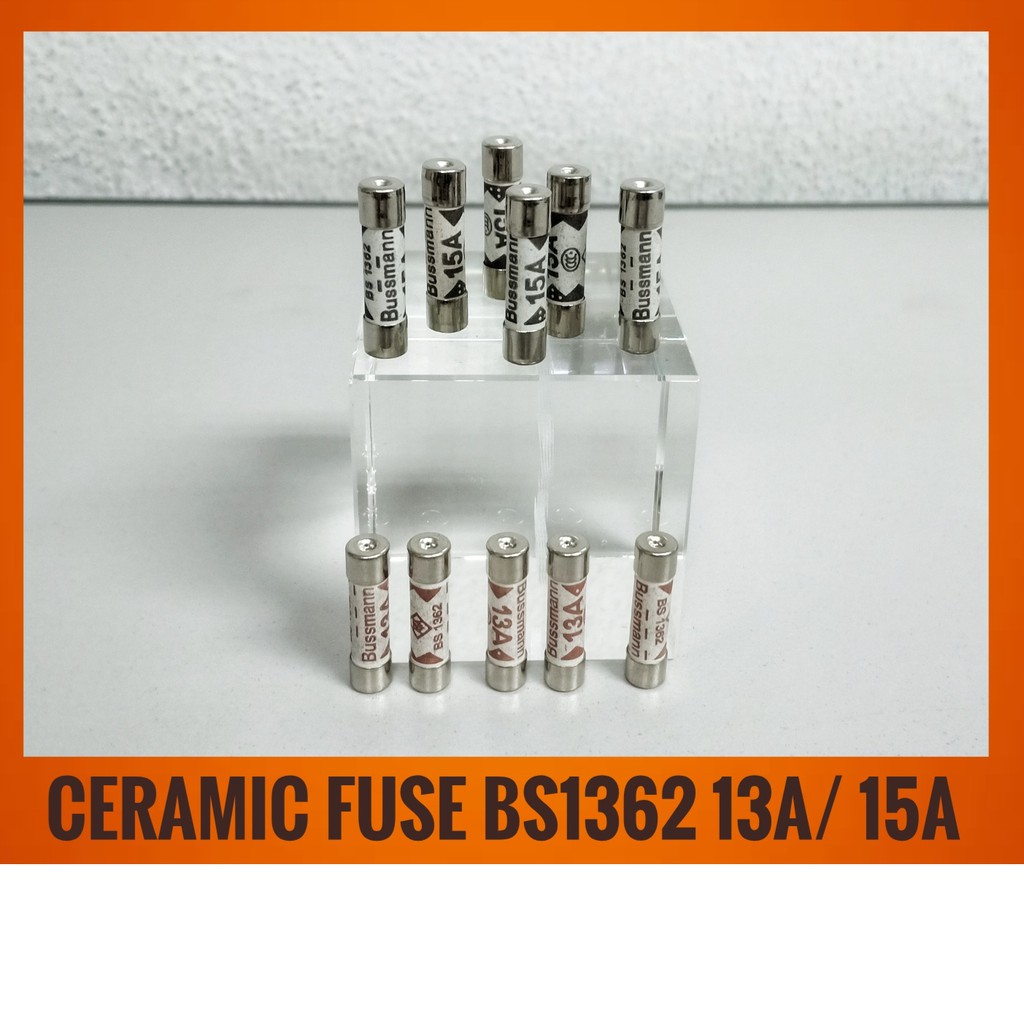 [5 PCS PACK]13A/15A CERAMIC FUSE PLUG TOP FUSE 6X25MM PRINTED BUSSMANN BS1362
