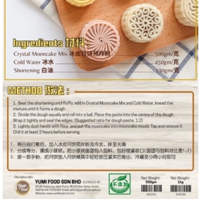 [READY STOCK] 500g/1kg Crystal Mooncake Mix (EXCLUDE Shortening) / QQ Snow Skin Mooncake Premix/ 冰皮月饼预拌粉/ 月饼混合粉 / 不包括白油