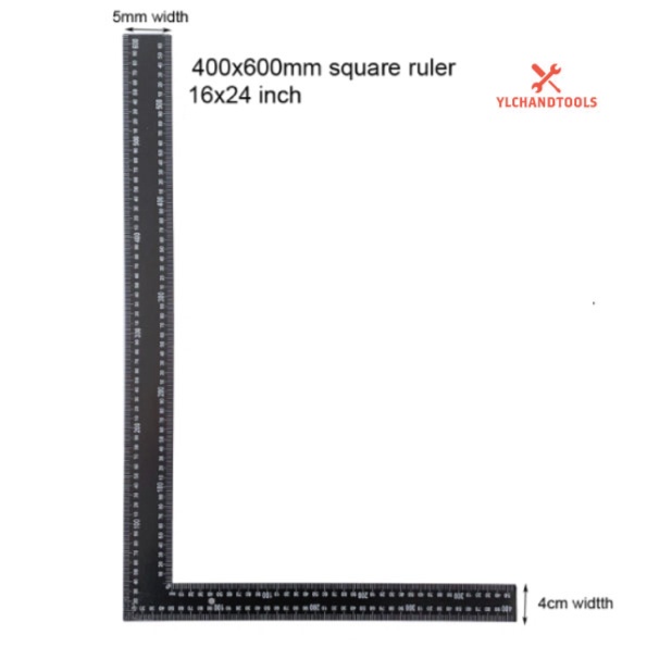 [READY STOCK] 600mm x 400mm BLACK STEEL TRY SQUARE RULER SESIKU ANGLE TRY SQUARE L SHAPE ANGLE RULER (16" x 24")