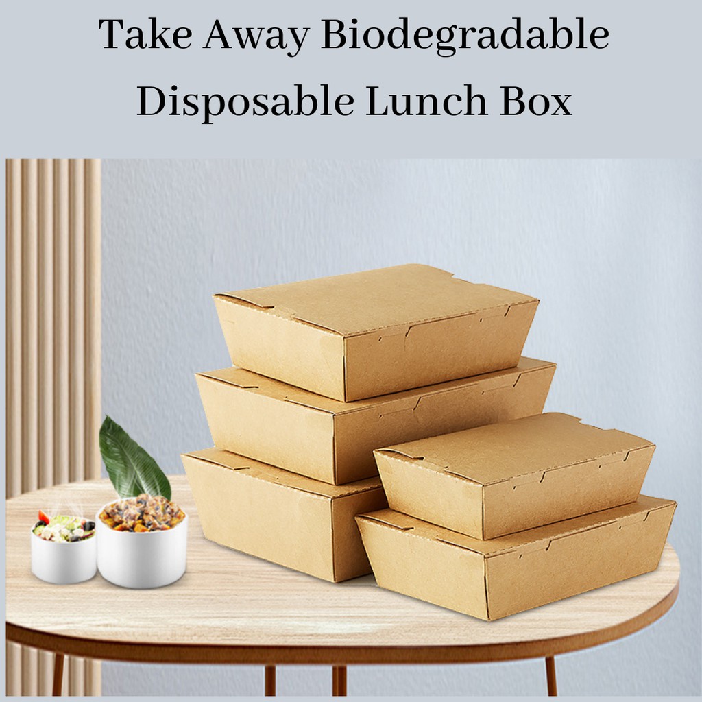 [ READY STOCK ] Brown Kraft Paper Lunch Boxes - Takeaway Biodegradable Disposable Lunch box