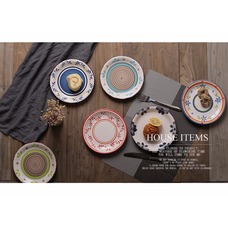 [READY STOCK] Ceramic Vintage Household Plate Hand-painted Tableware