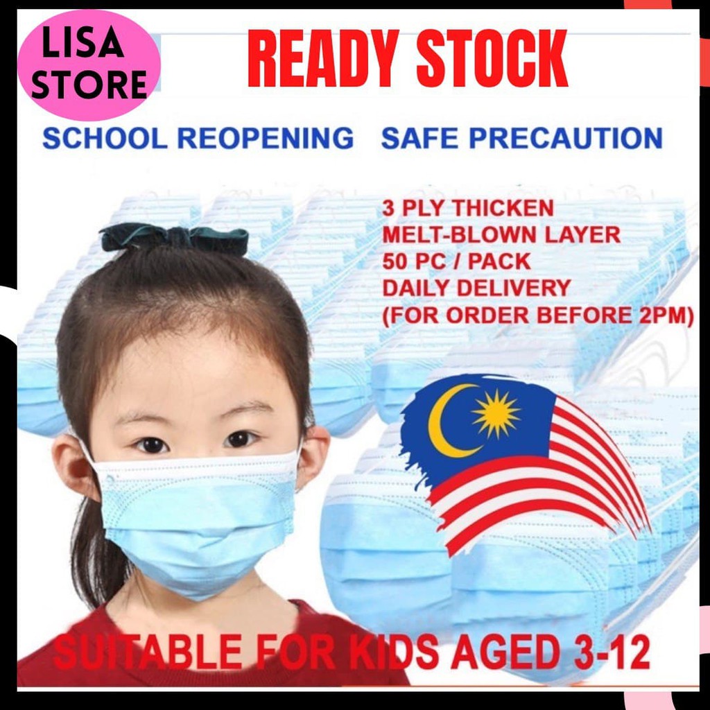 [READY STOCK] Children Mask 50Pcs FDA/CE/ISO Disposable Children Mask Ear-Loop Penutup Muka Kanak-kanak. FaceMask Kids