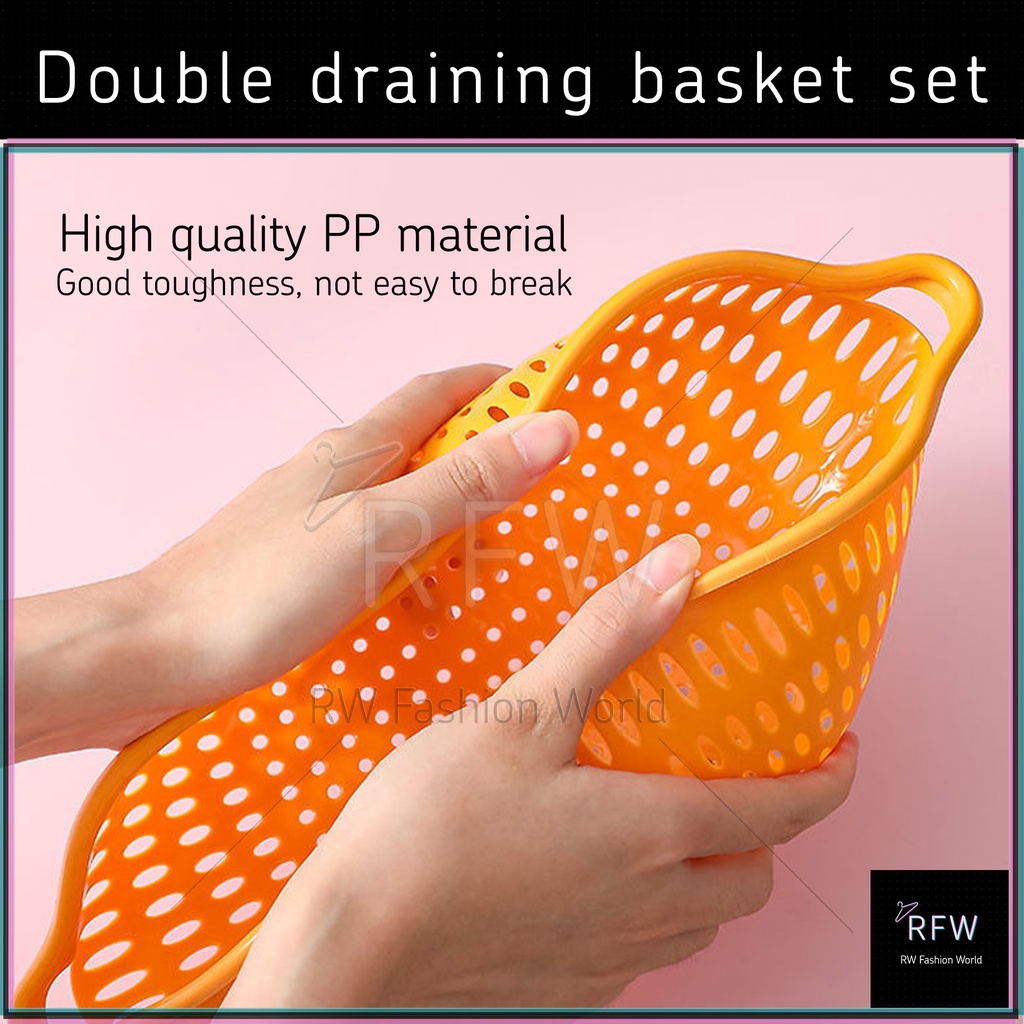 <READY STOCK> Double Draining Basket Set / Set Bakul Cuki dan Pengering Sayur