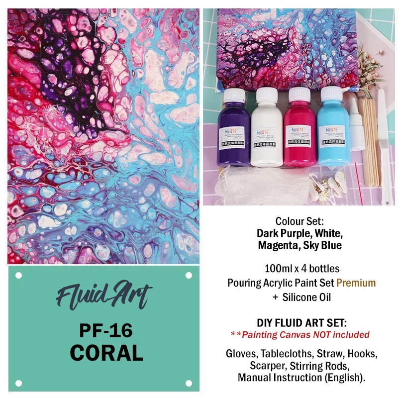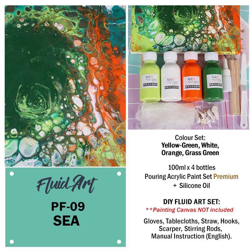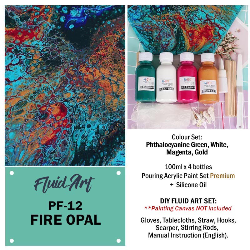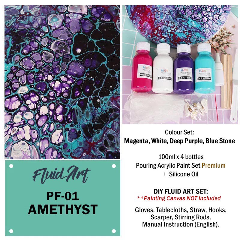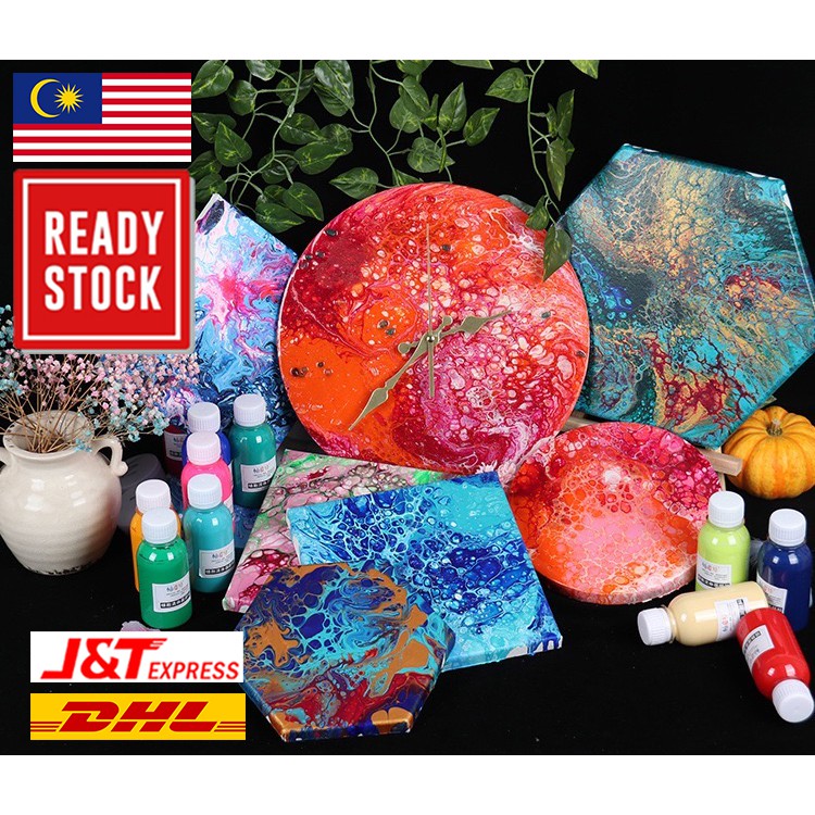 [READY STOCK] FLUID ART 100ML Acrylic Paint Set with Silicone Oil Acrylic Pouring Medium [DIY Kit]