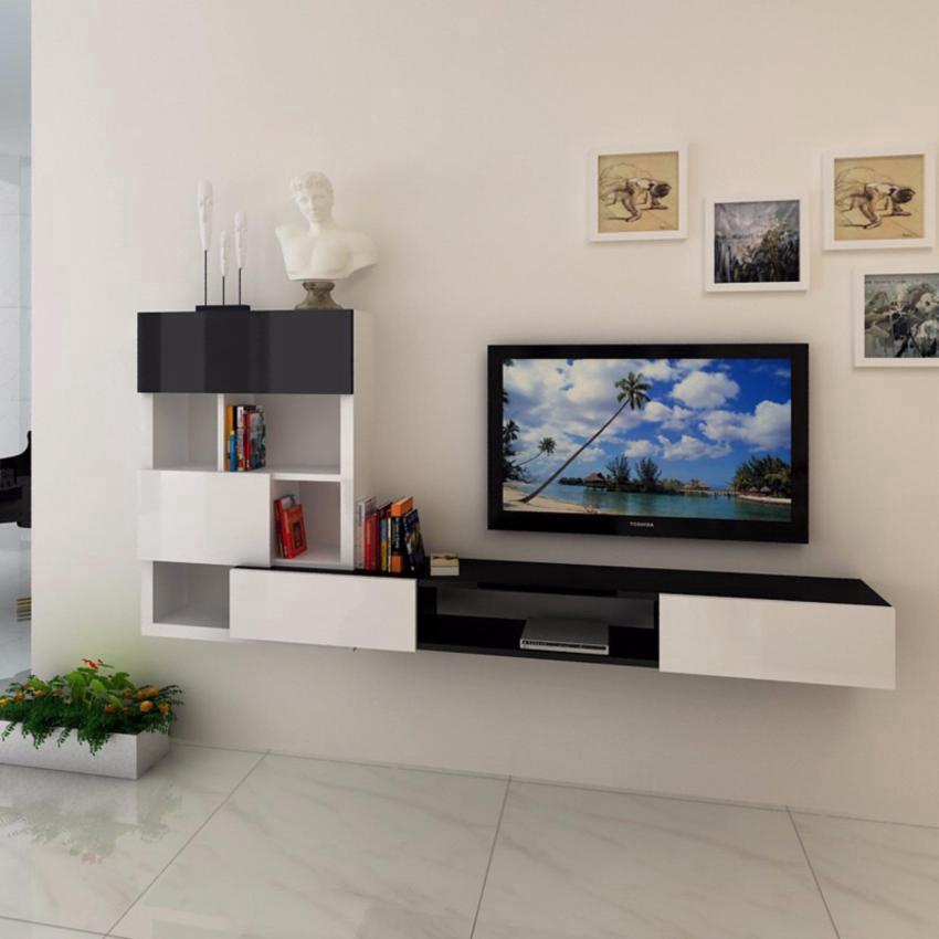 [READY STOCK] [FOREVER] L Shape Wall Mounted TV Cabinet Shelves Full Set (White Black)
