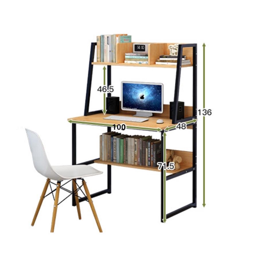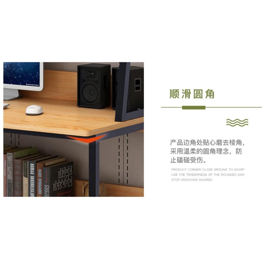 [READY STOCK] FOREVER Modern Study Table with Hidden Book Shelves Built-Up 3-Compartments Shelves (Almond)
