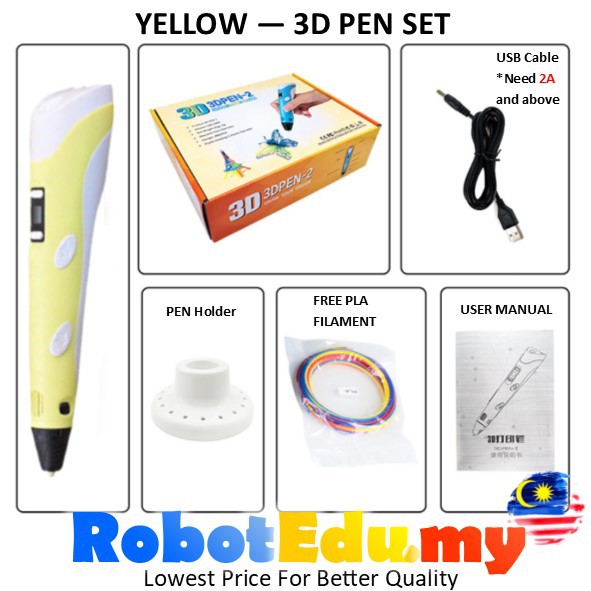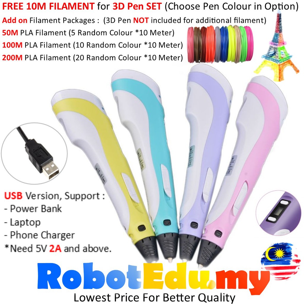 [READY STOCK] FREE 10M Filament - 3D PLA Printing Doodle Arts Craft Drawing USB Pen Set LCD V2 Education RBT Starter Kit